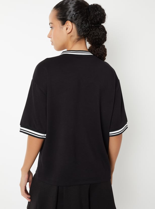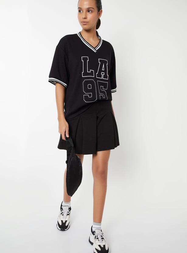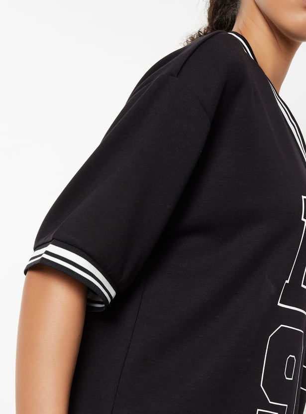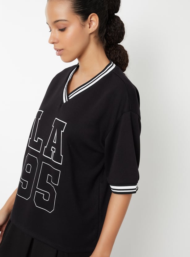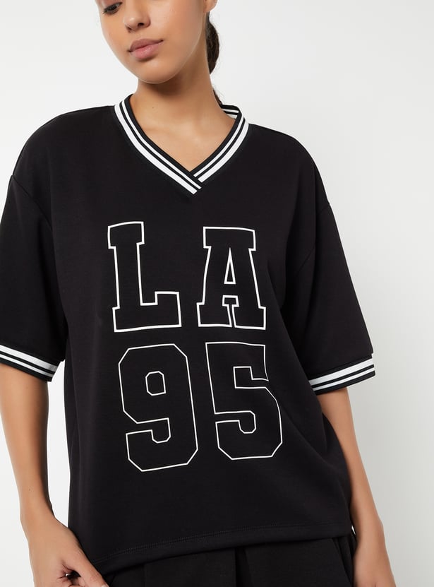 Stay on-trend with this printed boxy fit sports T-shirt, featuring a flattering V-neck and half sleeves. The relaxed silhouette offers comfort without compromising style.