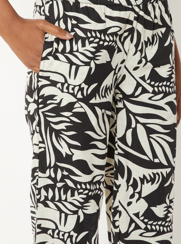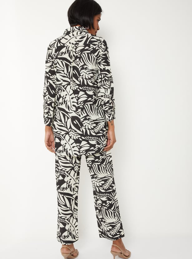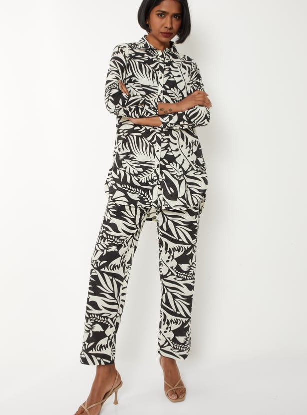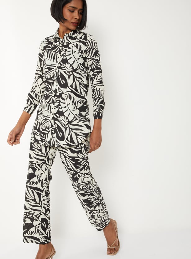 Elevate your everyday style with this printed co-ords set designed for effortless elegance. Featuring a collared shirt with a button placket and three-quarter sleeves, paired with printed straight pants with an elasticated waist and side pockets.