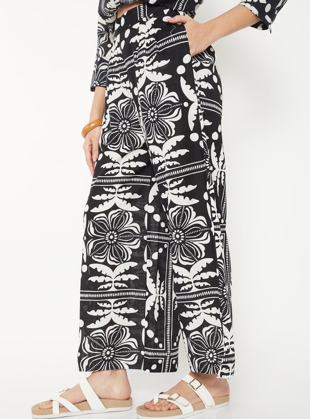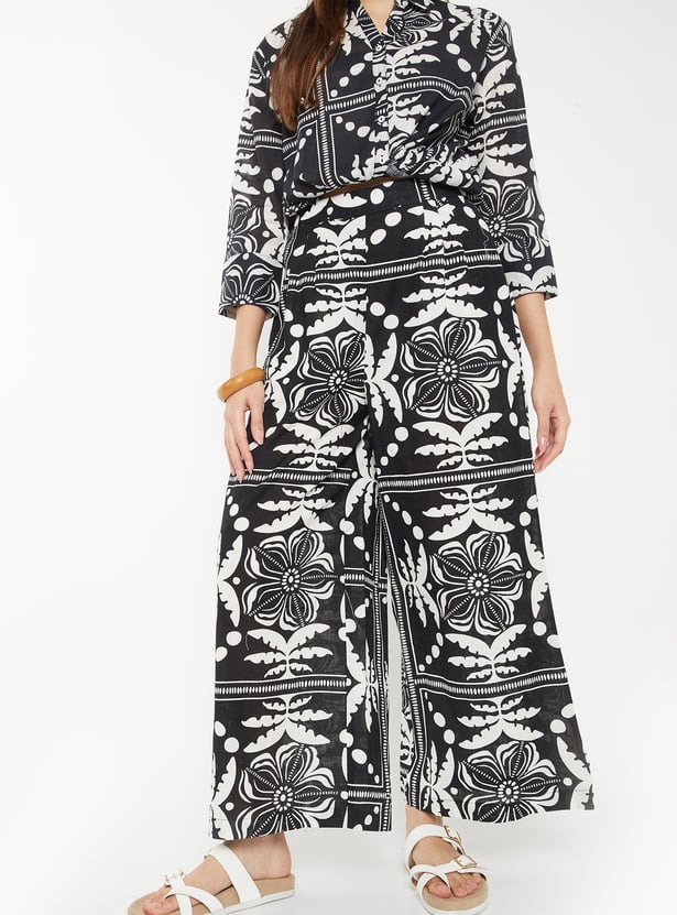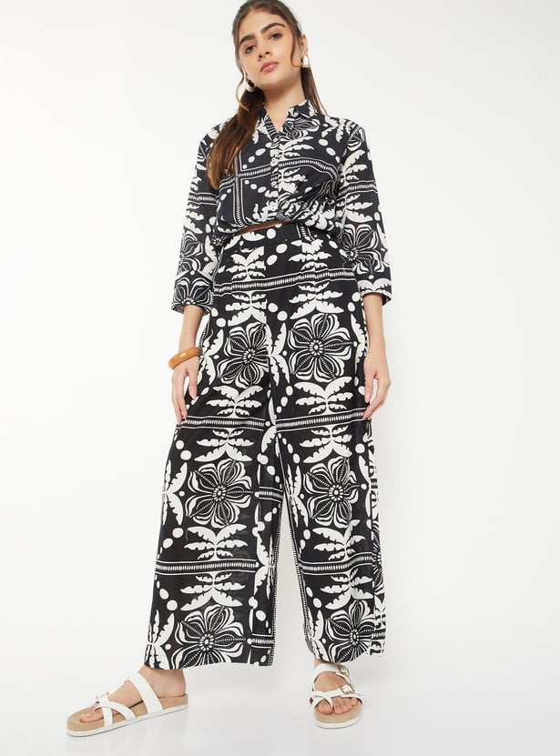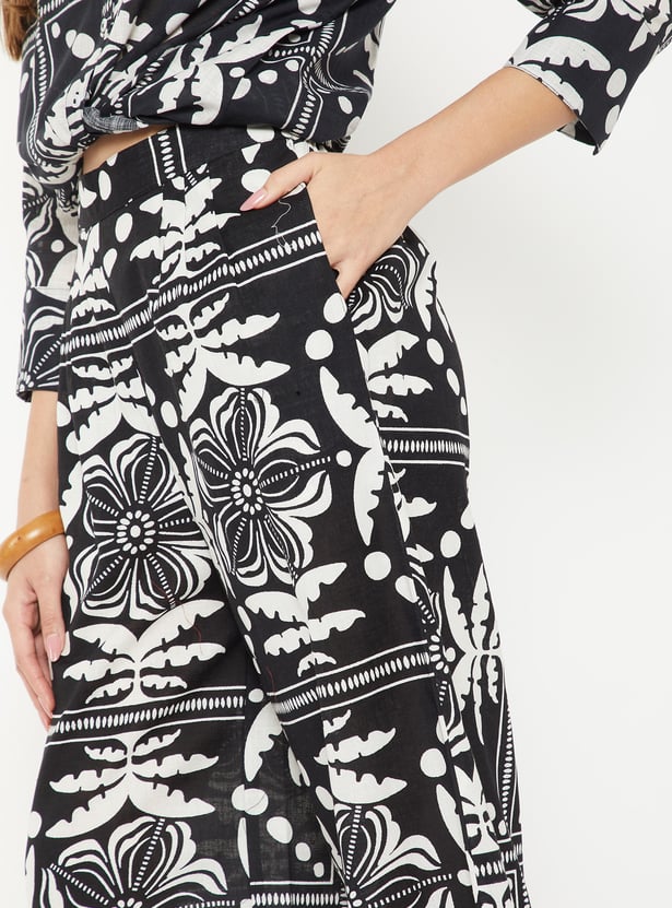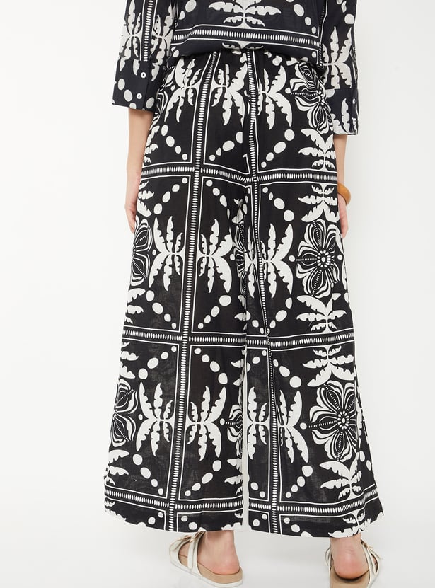 Add effortless movement to your wardrobe with these printed flared palazzos, designed with a comfortable elasticated waist for a flexible fit. The flowy silhouette and functional pockets make them a stylish yet practical choice for everyday wear.