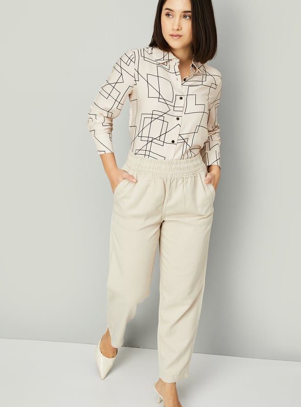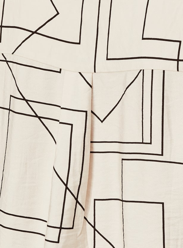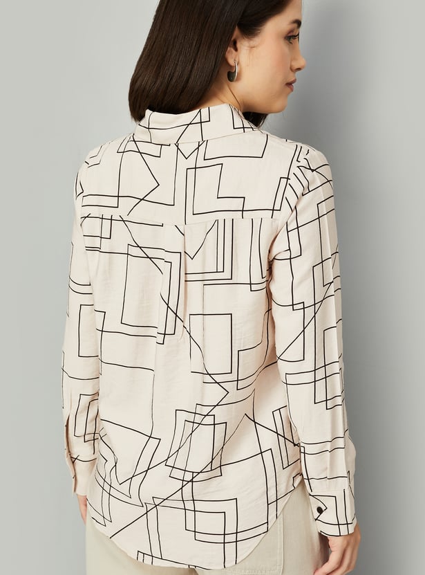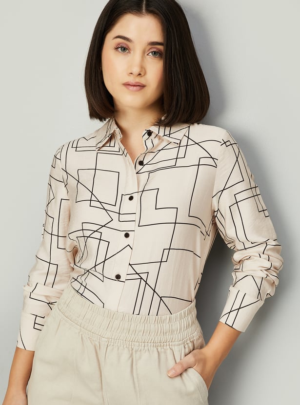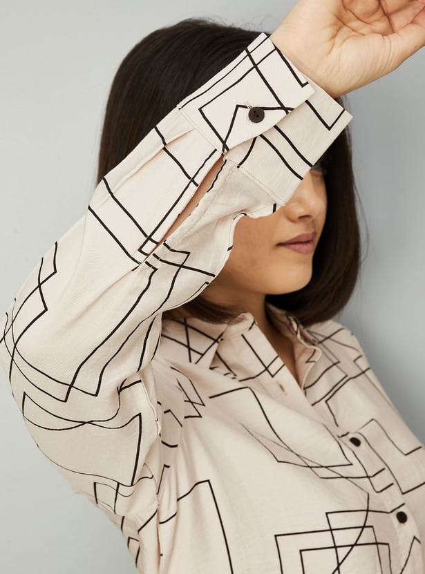 This printed oversized shirt combines effortless style with intricate detailing, featuring a button placket, spread collar, and full sleeves with button cuffs.