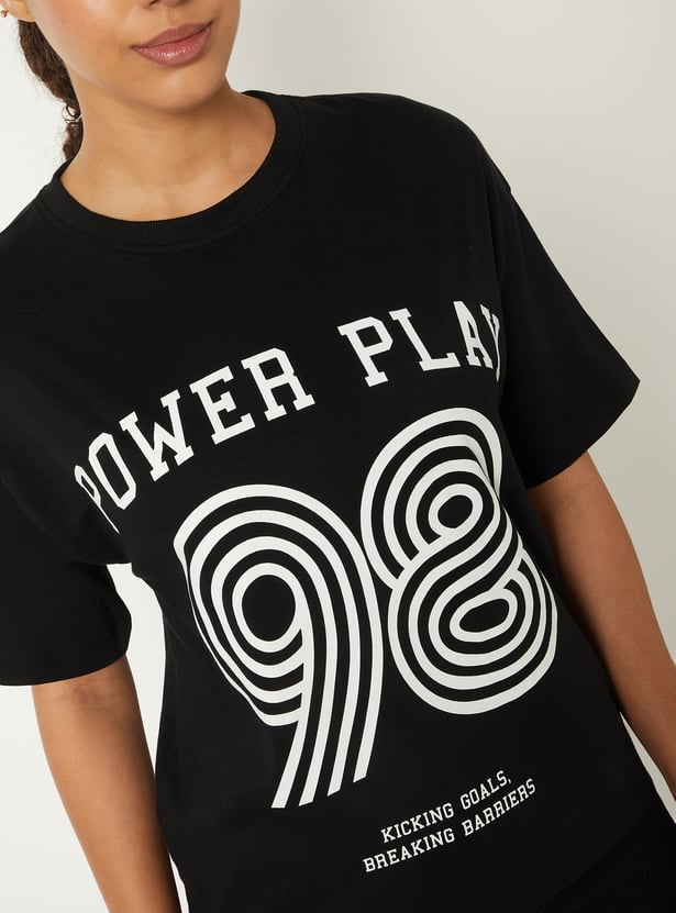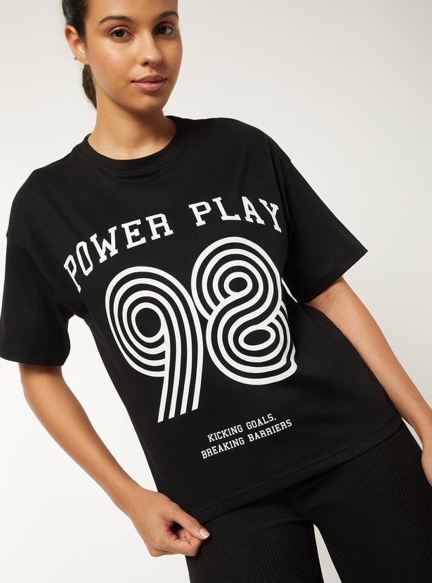 Make a statement in comfort with this oversized printed T-shirt, featuring a classic round neck and relaxed drop shoulders. The half sleeves and roomy fit ensure effortless ease, while the chest print adds a trendy, casual touch. Model Size :
