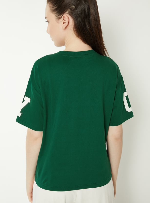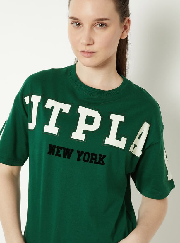 Make a statement in comfort with this oversized printed T-shirt, featuring a classic round neck and relaxed drop shoulders. The half sleeves and roomy fit ensure effortless ease, while the chest print adds a trendy, casual touch. Model Size :