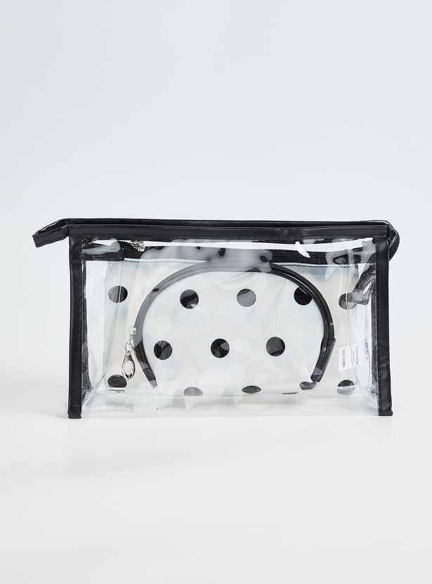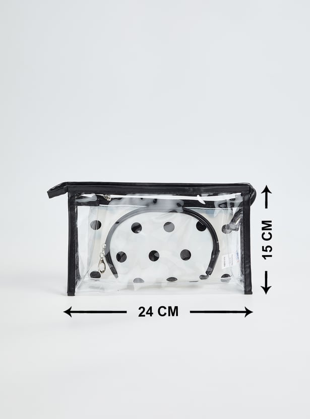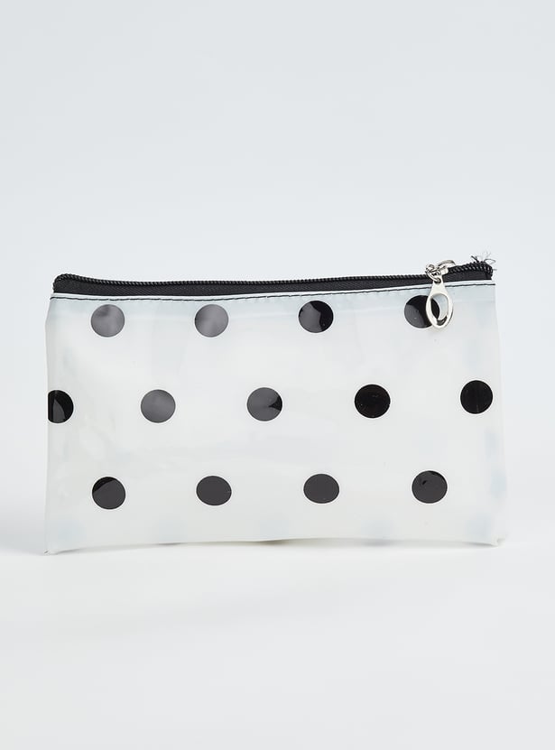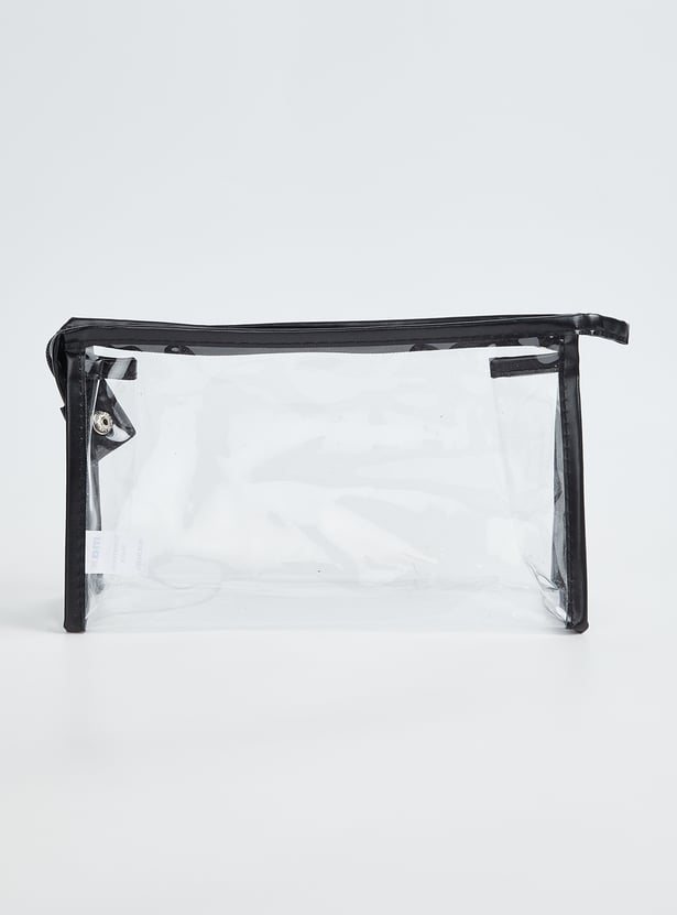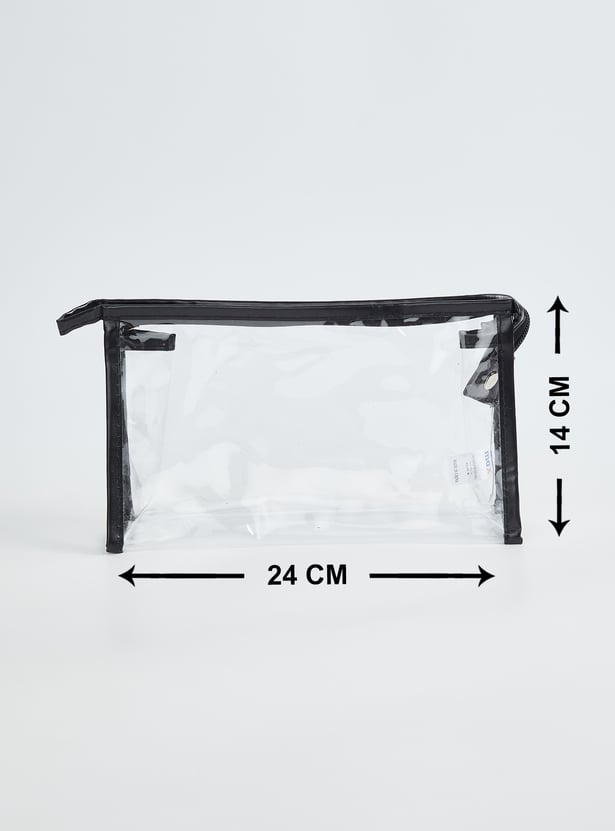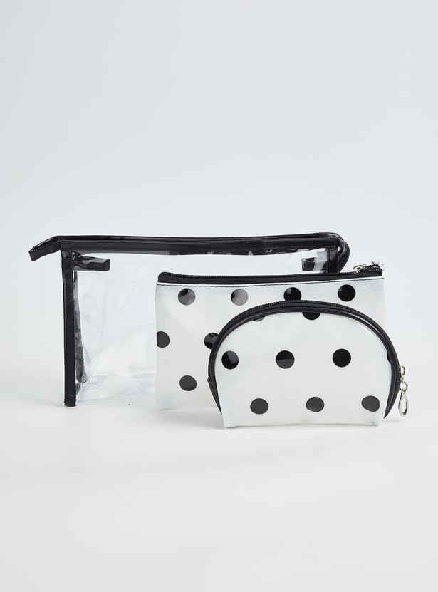 Organise your essentials with this stylish pouch set. Featuring a pack of 3 pouches in assorted designs, these pouches have a zip closure for convenience. Perfect for storing makeup, toiletries or small accessories, they combine practicality with modern design.