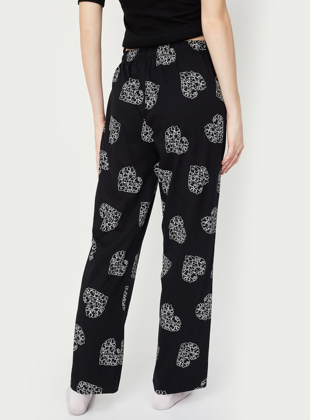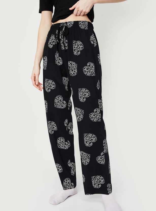 Sleep in style with this pair of pyjamas. Featuring heart prints, it offers a fun touch. This pair has a drawstring waist for an adjustable fit.