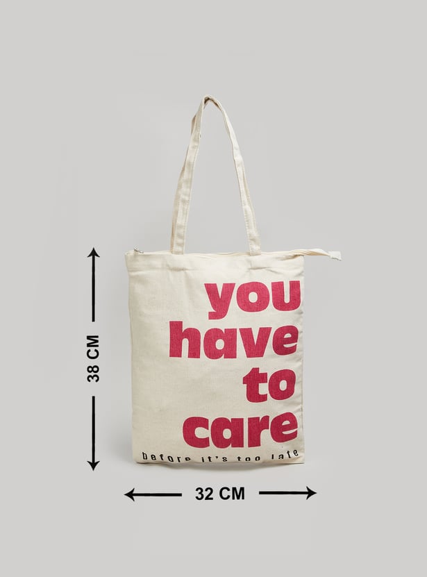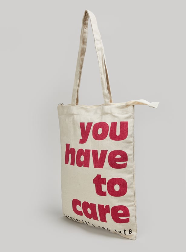 Make a stylish statement with this shopper bag. It showcases a striking graphic print on the front and comes with two convenient handles for easy carrying. The top of the bag opens to reveal a compact compartment with a secure zip closure, offering both fashion and functionality for your everyday needs.