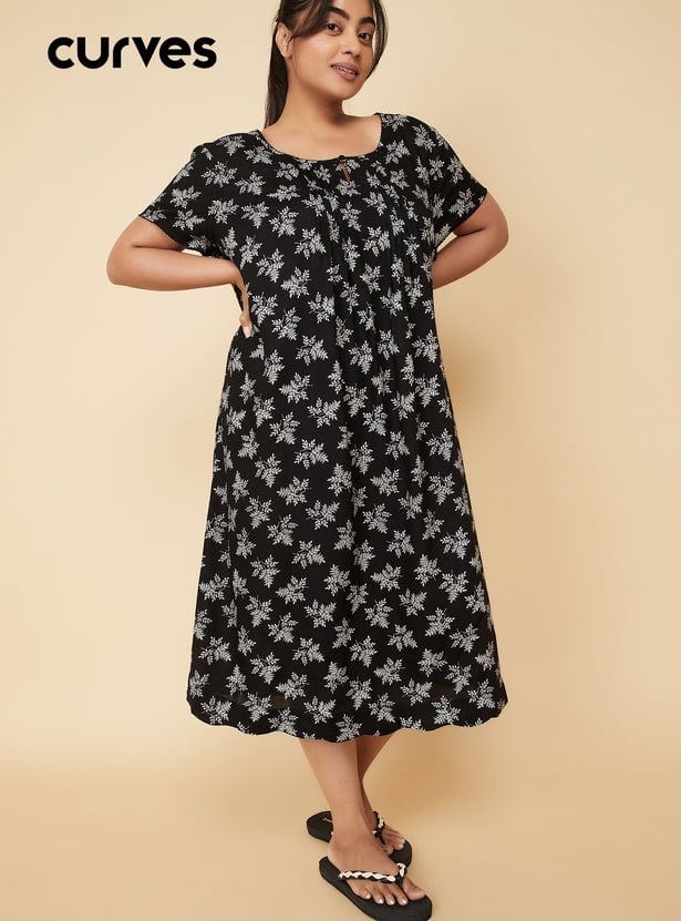 Relax in style with this printed sleepwear gown featuring a round neck and half sleeves. The playful print adds a fun touch, while the soft fabric ensures comfort for a peaceful night's sleep. Model Size :