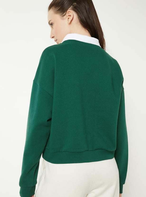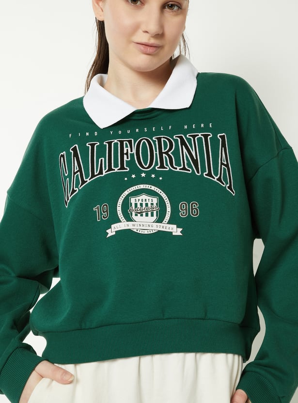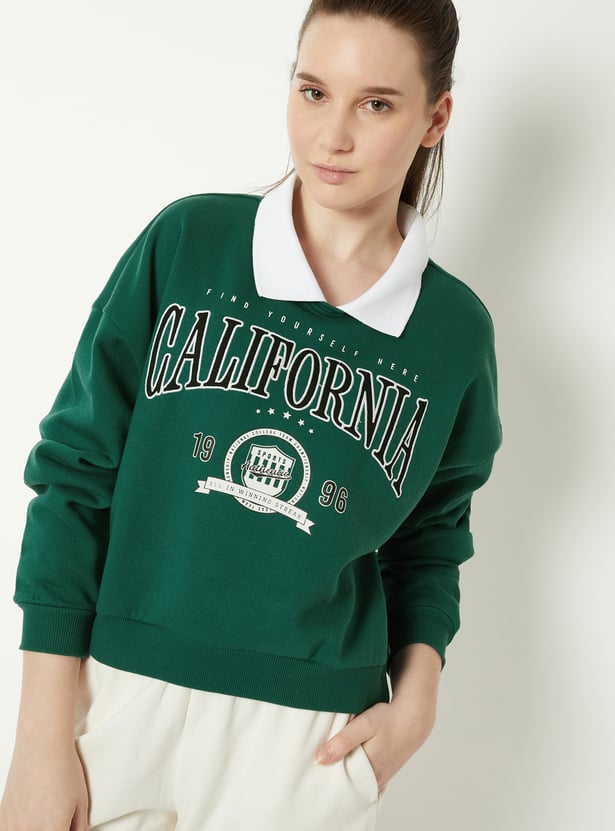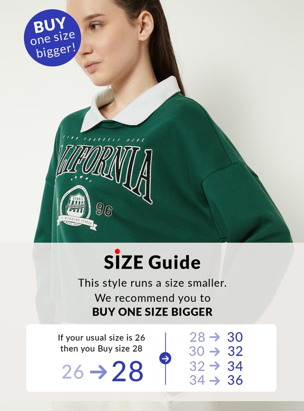 Stay cosy and stylish with this printed sweatshirt, featuring a contrasting collar and full sleeves. The ribbed trim adds a neat finish, while the playful print brings a fun, casual vibe. Model Size :
