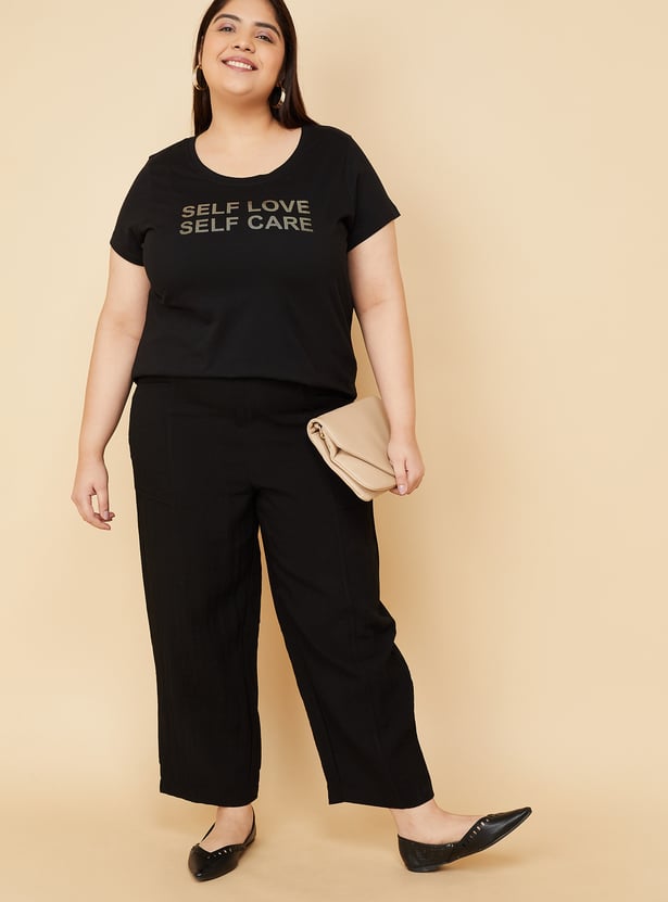 Make a statement with this printed T-shirt, featuring a round neckline and half sleeves. Casual, comfortable, and full of character, it’s the perfect pick for everyday style with a bold twist. Model Size :