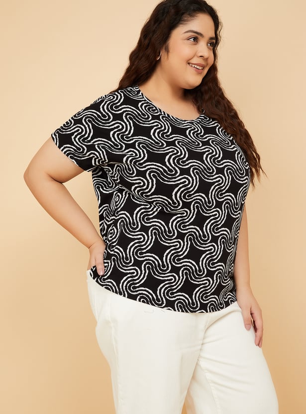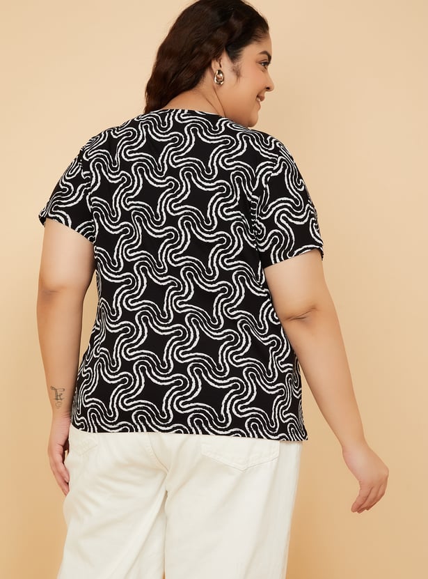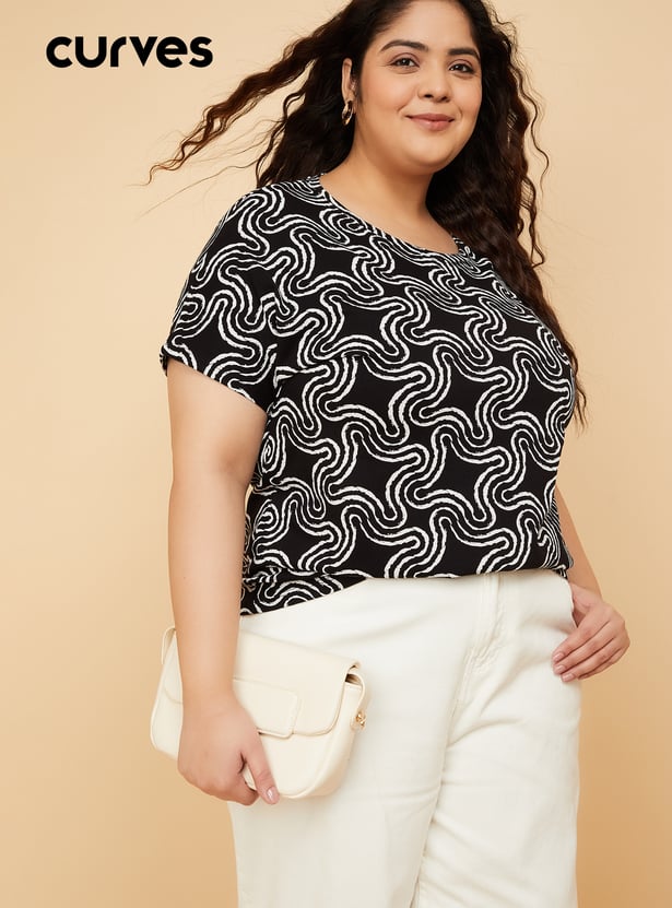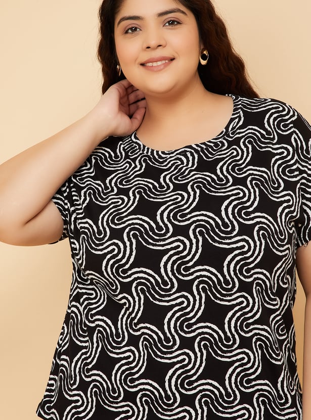 Add a playful touch to your wardrobe with this T-shirt. Featuring a round neck and half sleeves, it’s designed for a relaxed, easy-going look. The contrasting print adds a stylish edge to its casual vibe. Model Size :