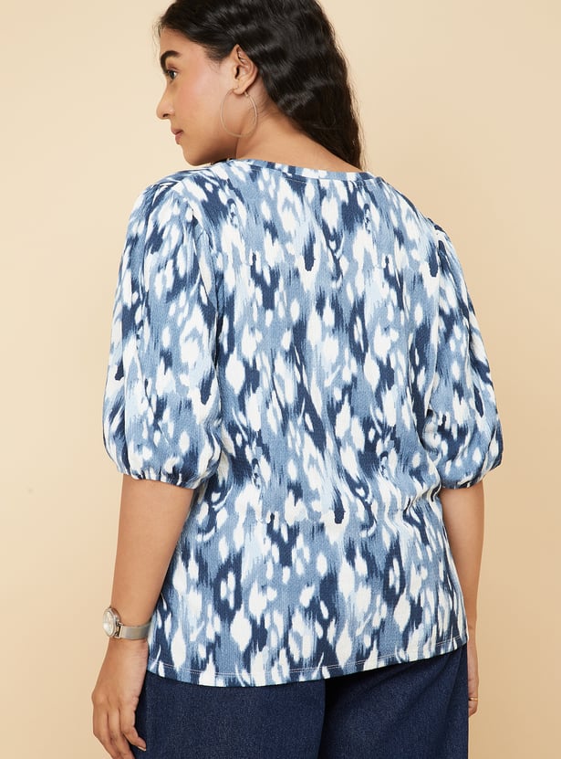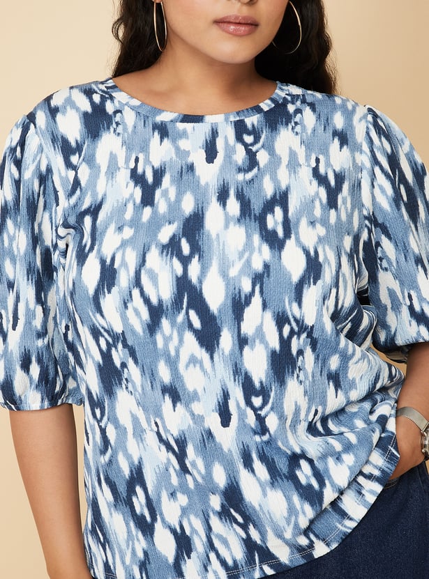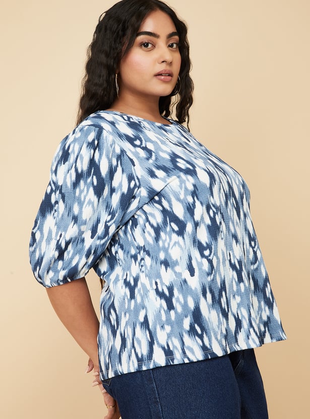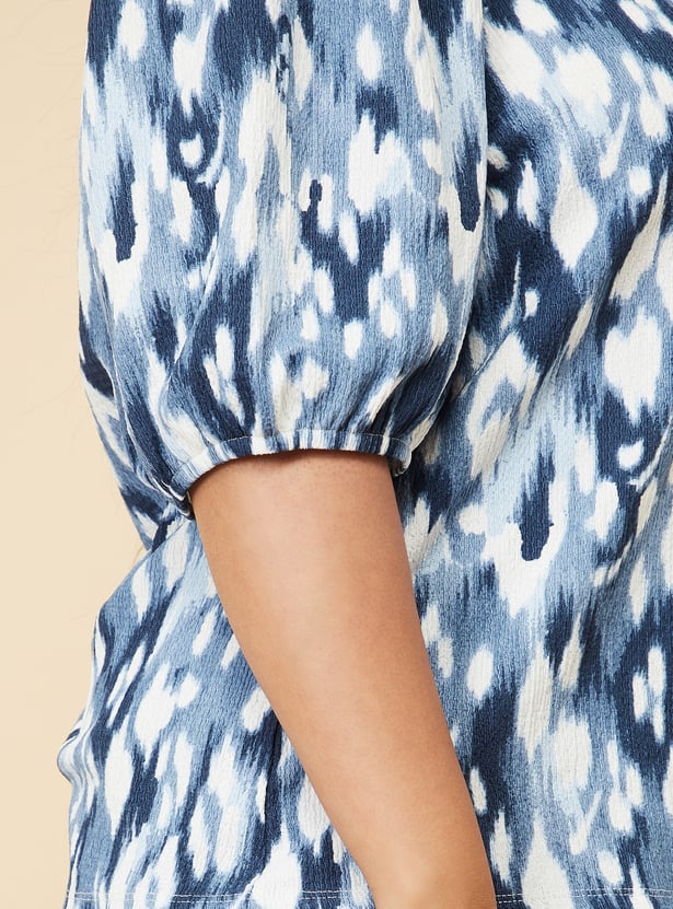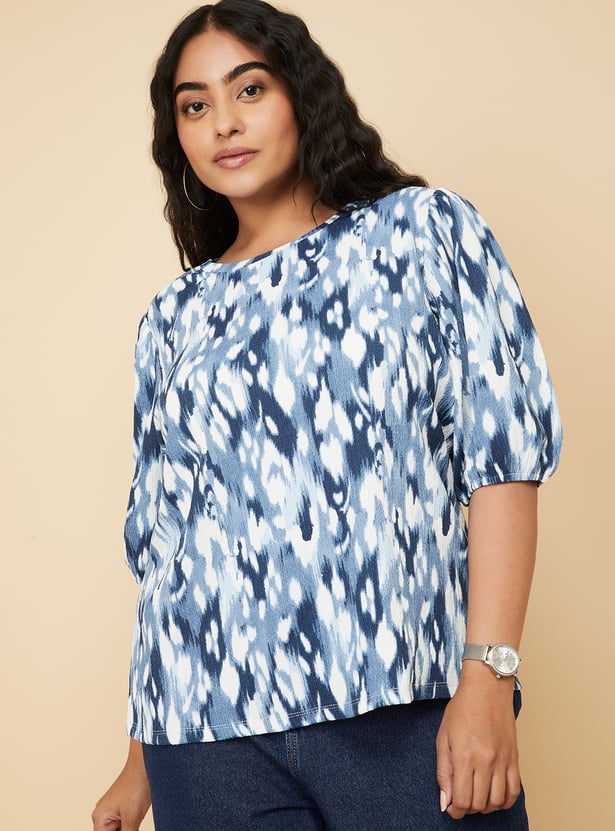 This printed top is the perfect blend of playful and chic, featuring a round neck and stylish puff sleeves for a touch of drama. The vibrant print adds personality to your outfit, making it a versatile piece for various occasions. Model Size :