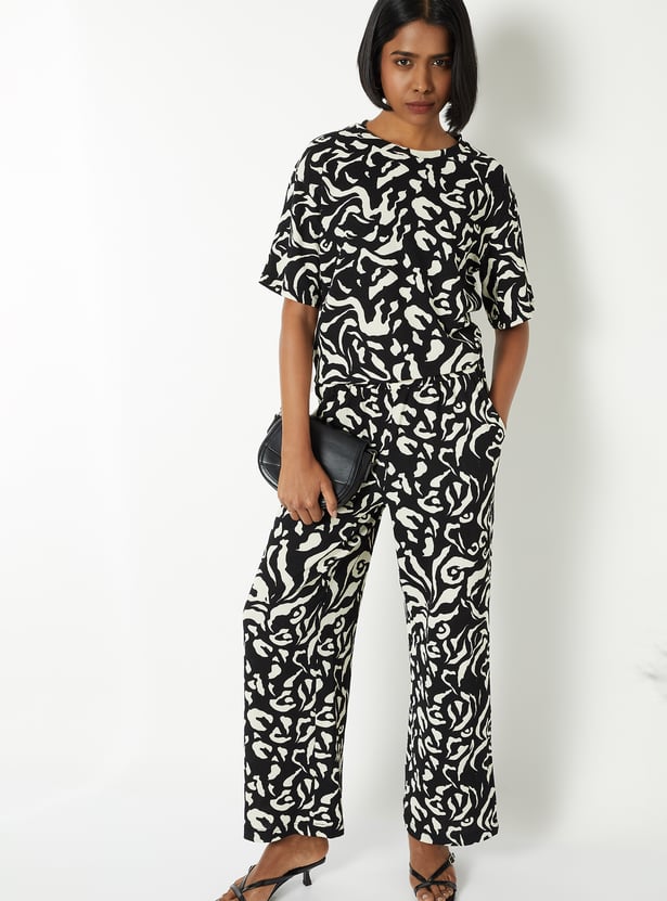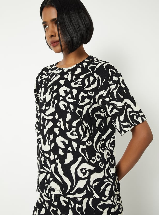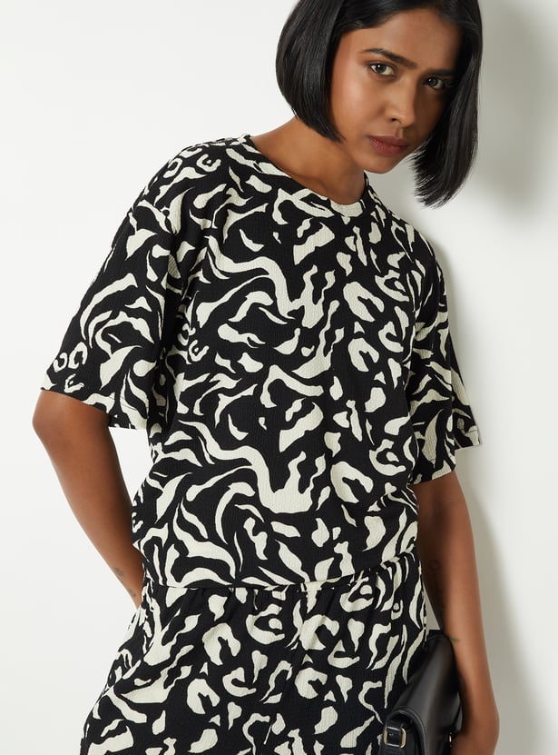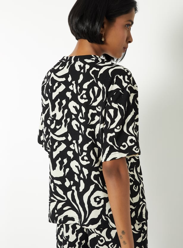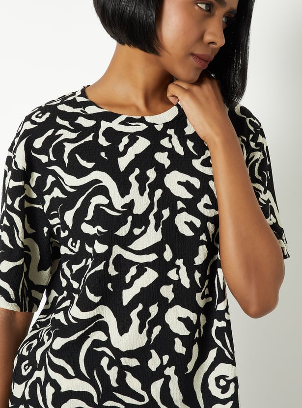 This printed top features a classic round neckline and half sleeves, offering a clean and versatile silhouette. The lively all-over print adds a touch of charm, making it an easy pick for everyday style.
