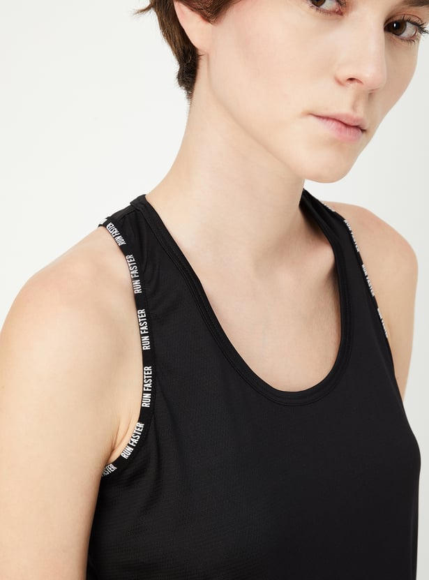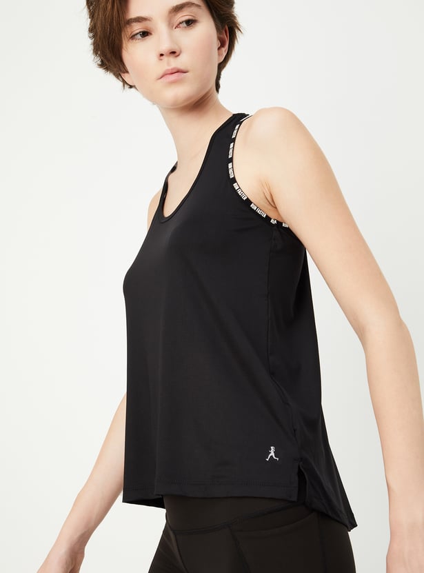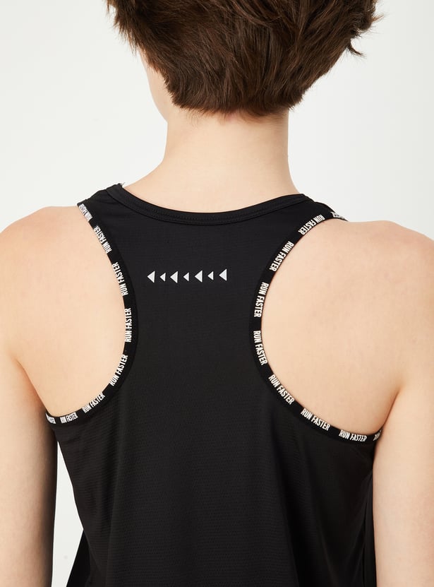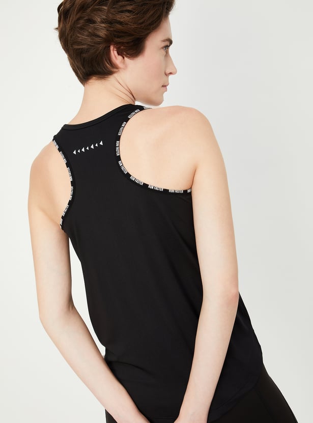 Stay active in this comfort in this tank top. It is highlighted with a contrast trim, scoop neck, and a racerback design. It boasts quick dry and anti-bacterial features that keep you dry and cool.