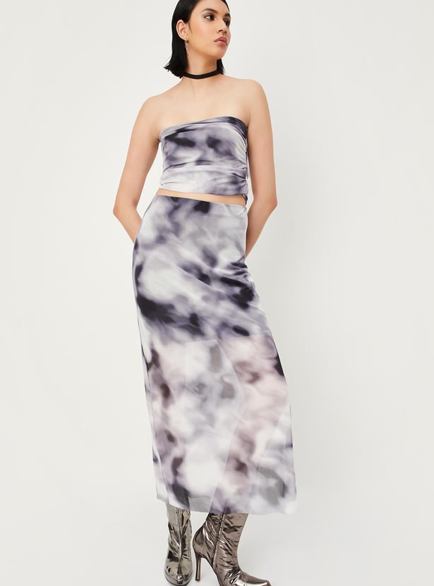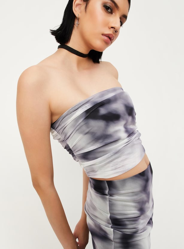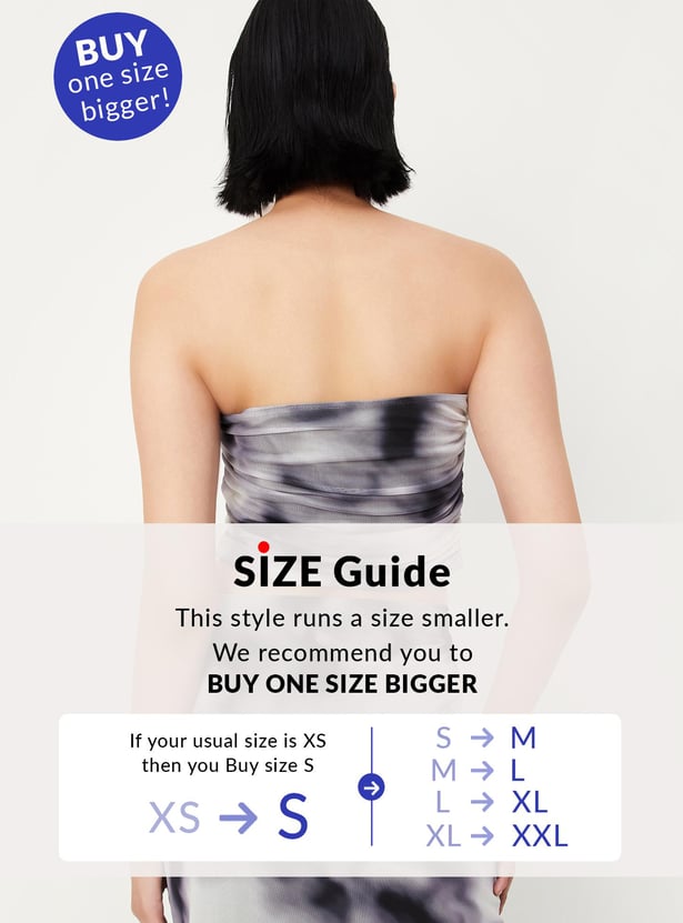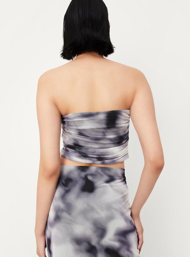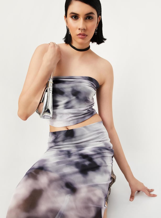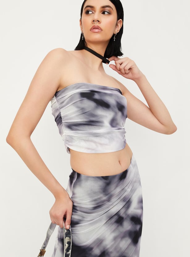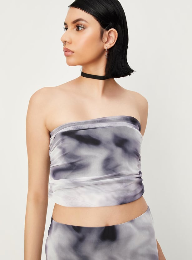 A figure-flattering style tube top like this one is essential in every fashionable woman's wardrobe. The printed net overlay will keep you looking trendy and cool when you step out.