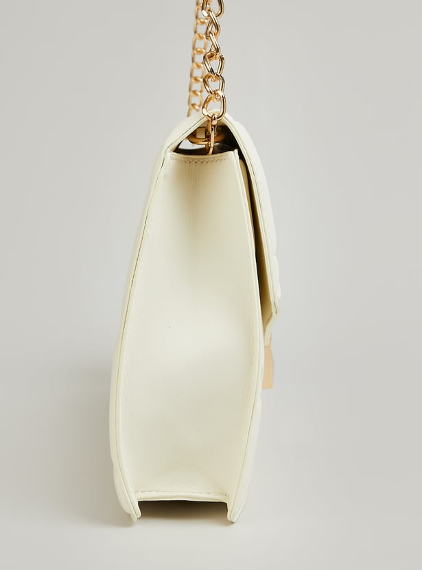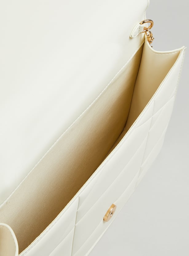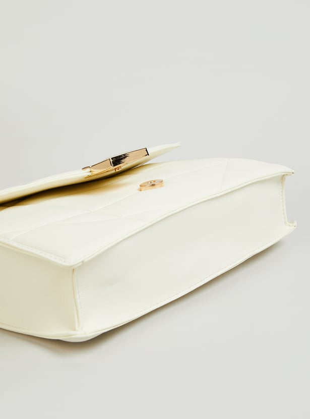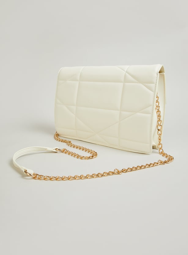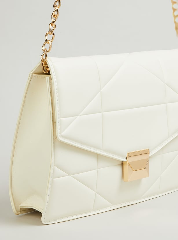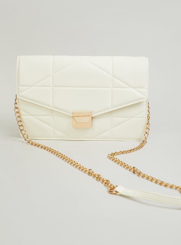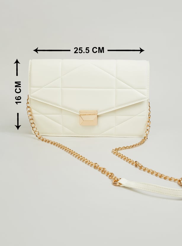 This quilted envelope sling bag brings chic sophistication to your accessory game, featuring a stylish snap button closure and a sleek strap with chain detailing. Compact yet elegant, it's perfect for adding a touch of glamour to any outfit.