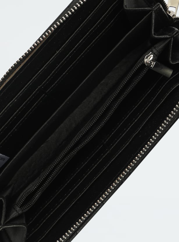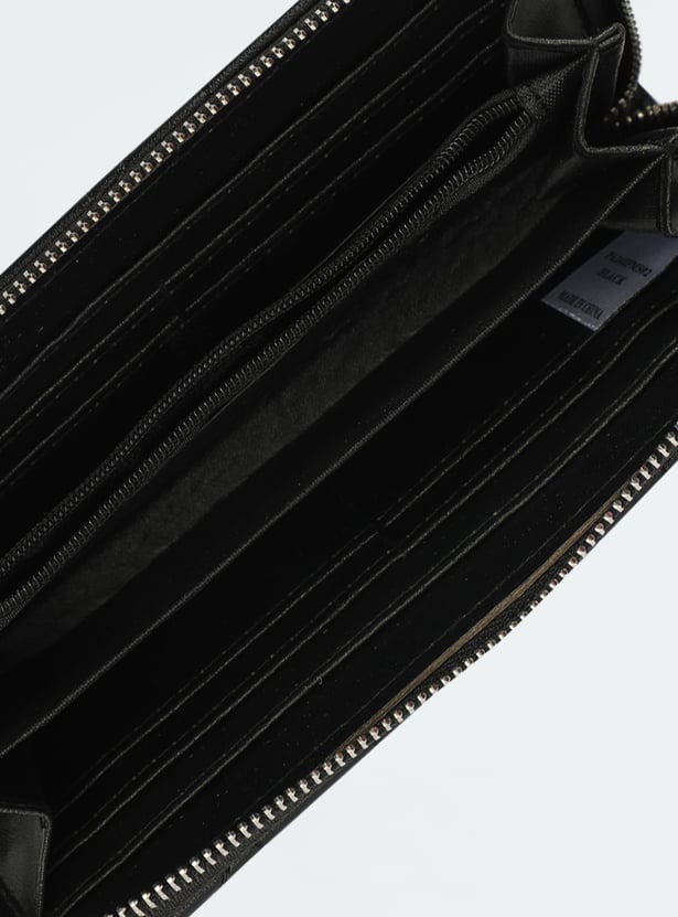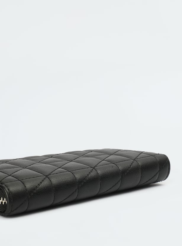 Keep your essentials organized in style with this wallet, featuring a quilted design, a zip closure, three main compartments, an internal zip pocket, and multiple card slots.
