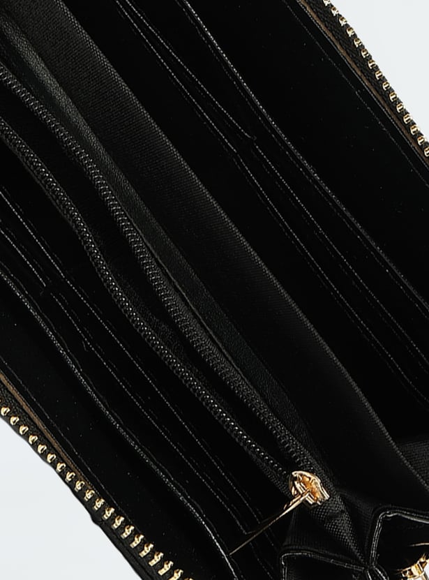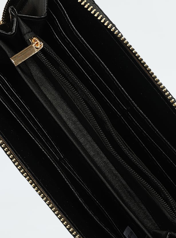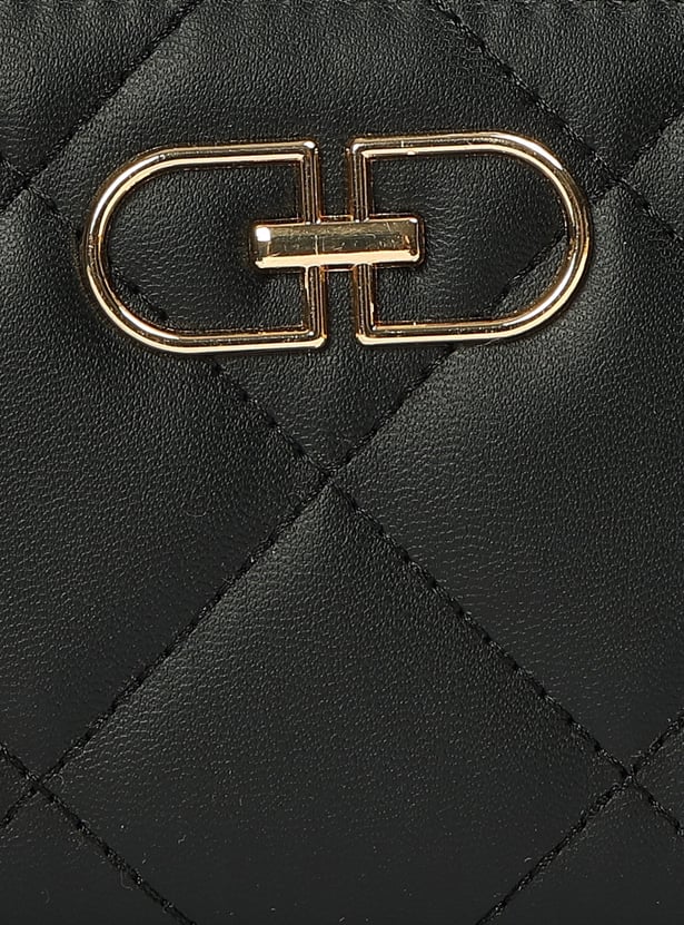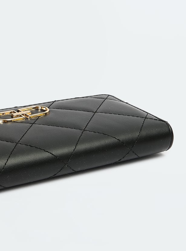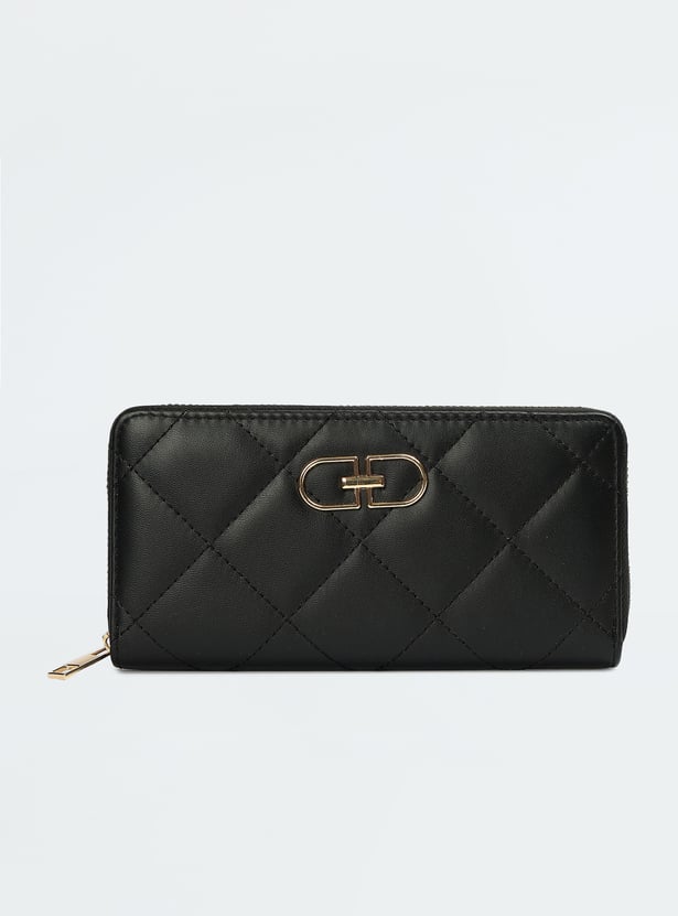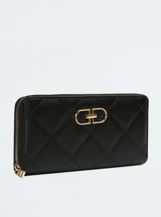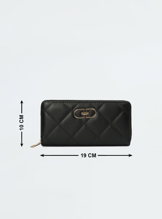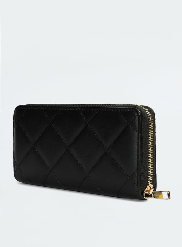 Keep your essentials organized in style with this wallet, featuring a quilted design, a zip closure, three main compartments, an internal zip pocket, and multiple card slots.