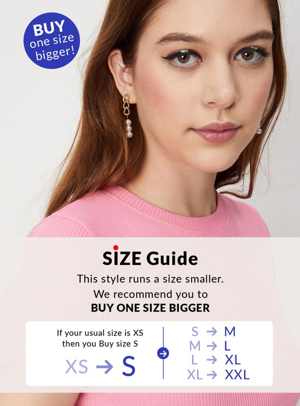 Up your style quotient with this casual top with a knit surface, a round neckline, and short sleeves. Team up this top with denim shorts and sneakers to complete your everyday ensemble.