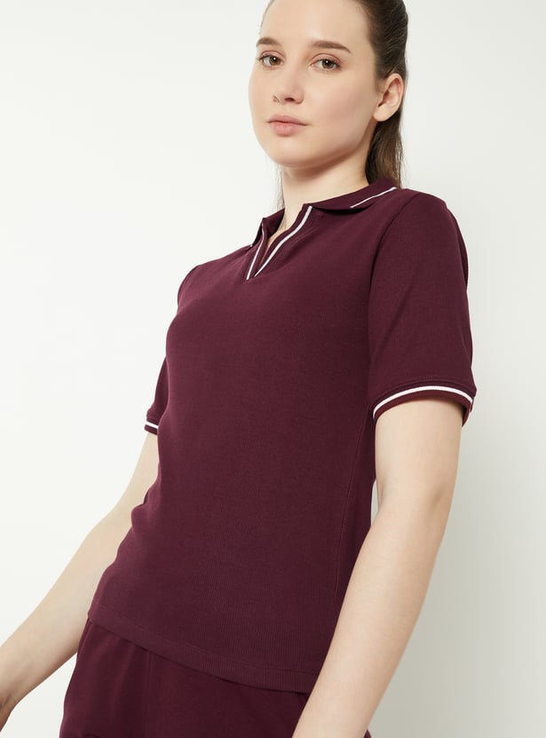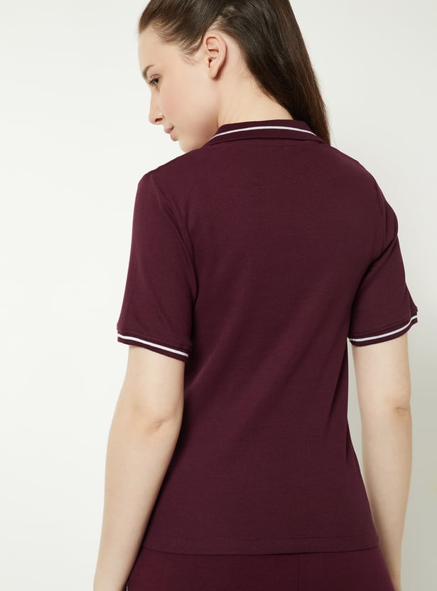 Upgrade your workout wardrobe with this slim-fit T-shirt, featuring a classic Johnny collar, ribbed detailing, and eye-catching contrast trim. The half sleeves and straight hem offer a clean, flattering silhouette.