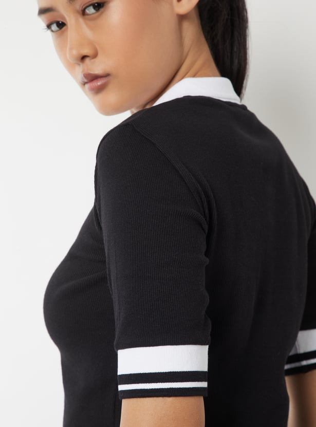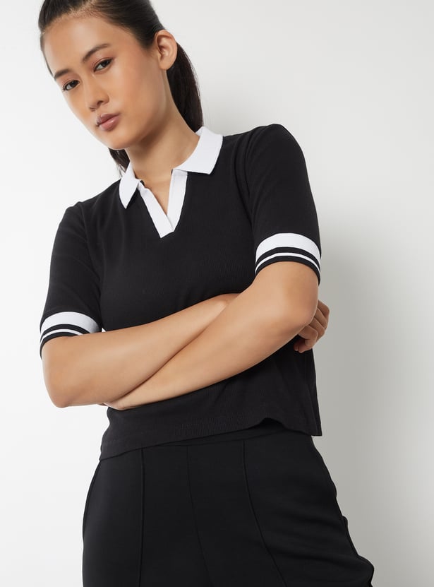 Women Ribbed Sports Polo T-shirt
