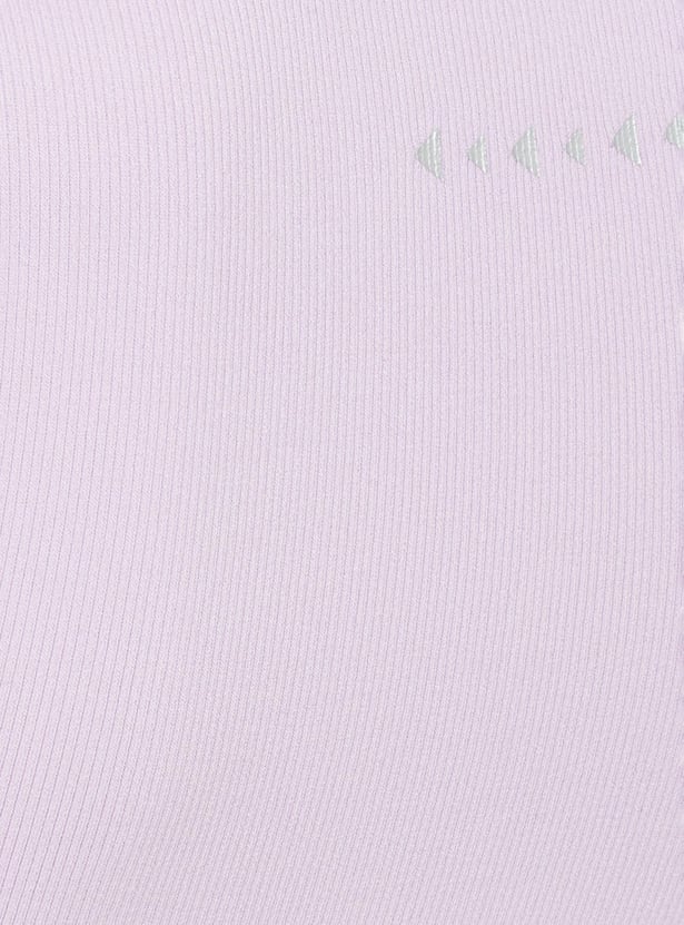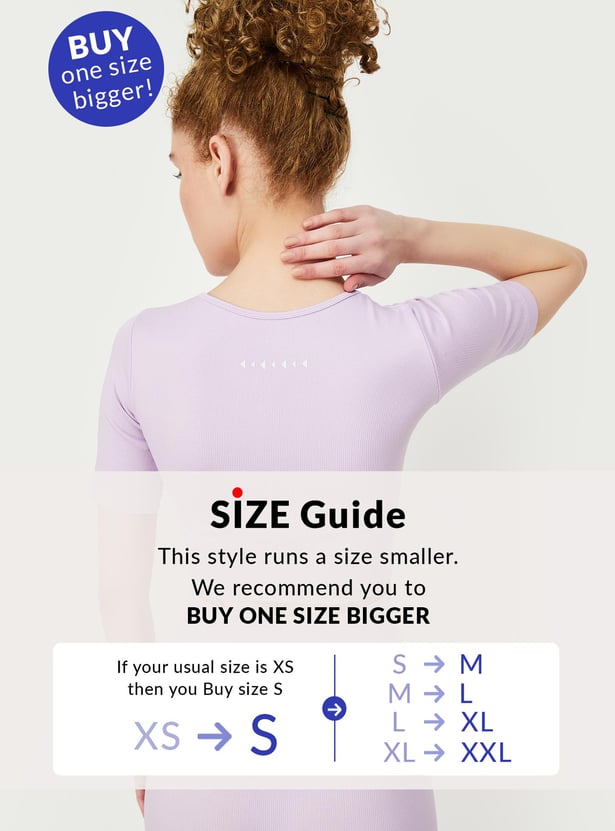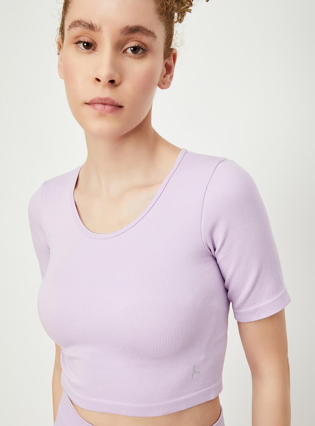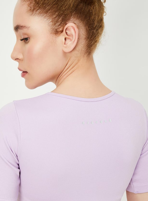 Unleash your potential with this ribbed t-shirt, featuring a round neck, and half sleeves. Flaunting a ribbed surface and cropped profile, it's designed to elevate your performance in style.