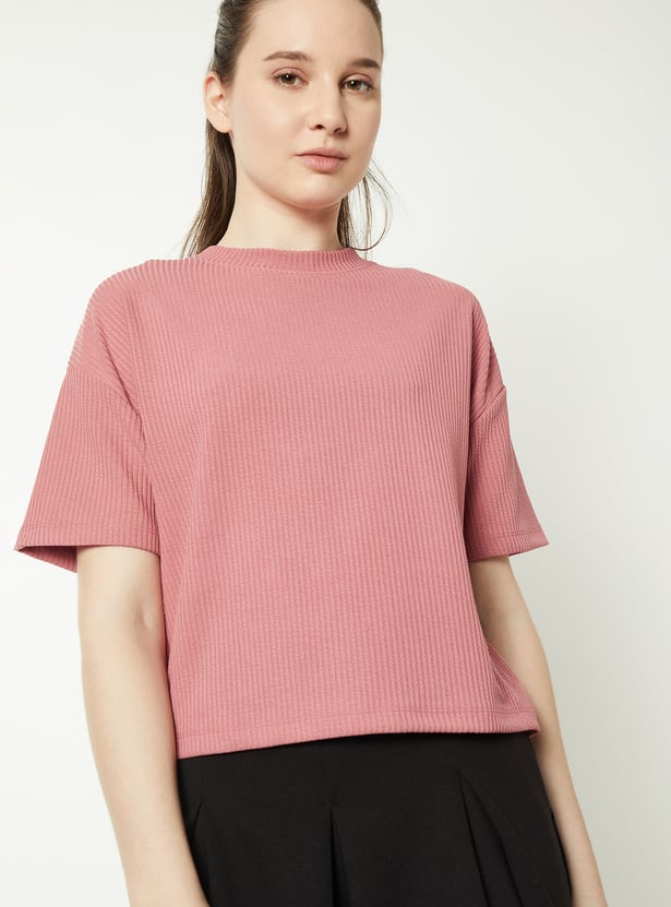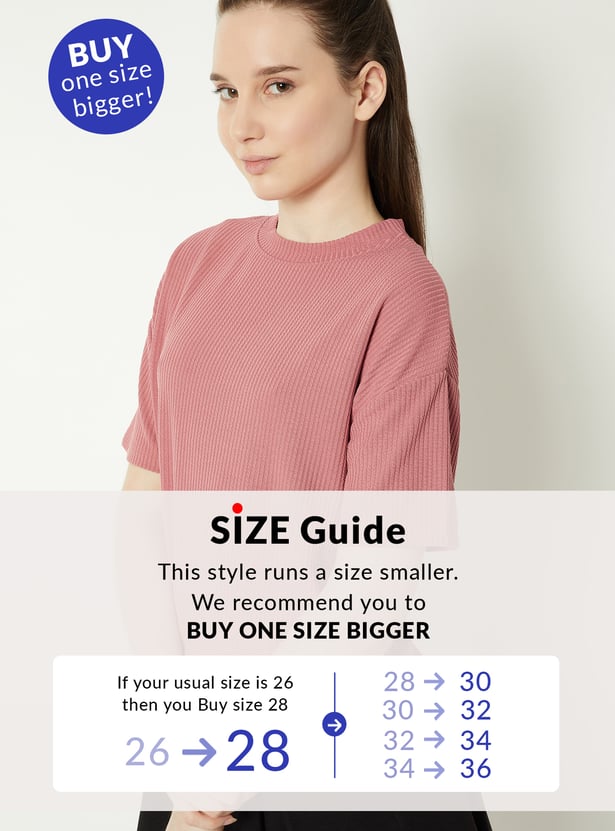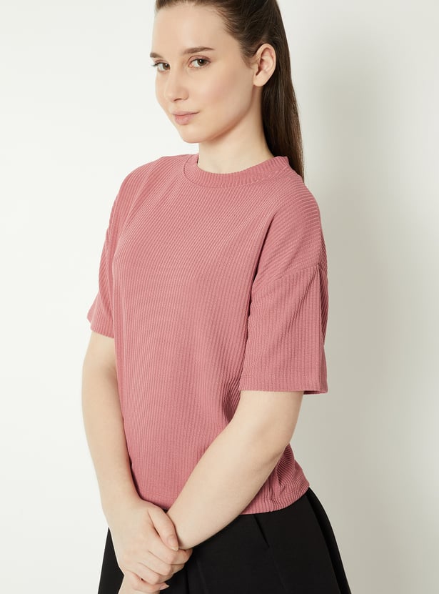 Keep it simple and stylish with this ribbed sports T-shirt, featuring a classic round neck and half sleeves. The subtle texture adds a touch of detail to your everyday basics.