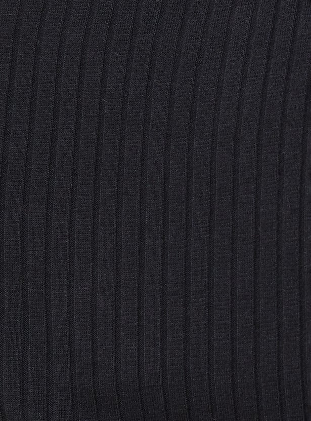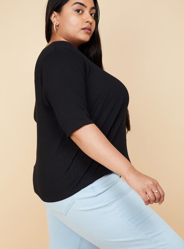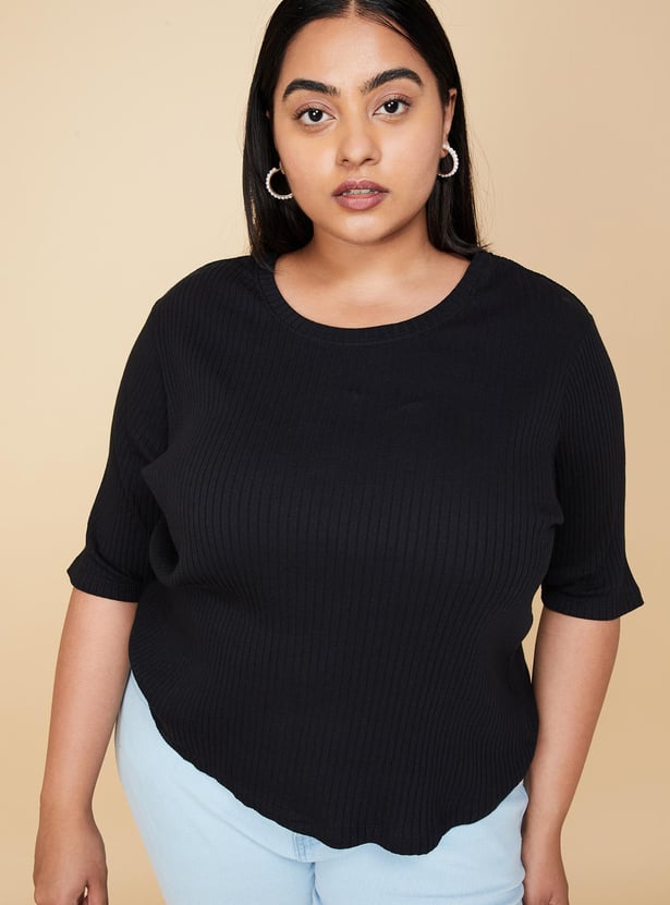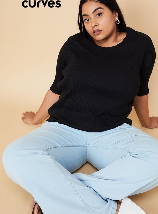 Cosy and stylish, this top is a must-have in every fashionable woman's wardrobe. It features a round neck and half sleeves. Additionally, it is highlighted with a ribbed knit pattern, offering a trendy look. Model Size :