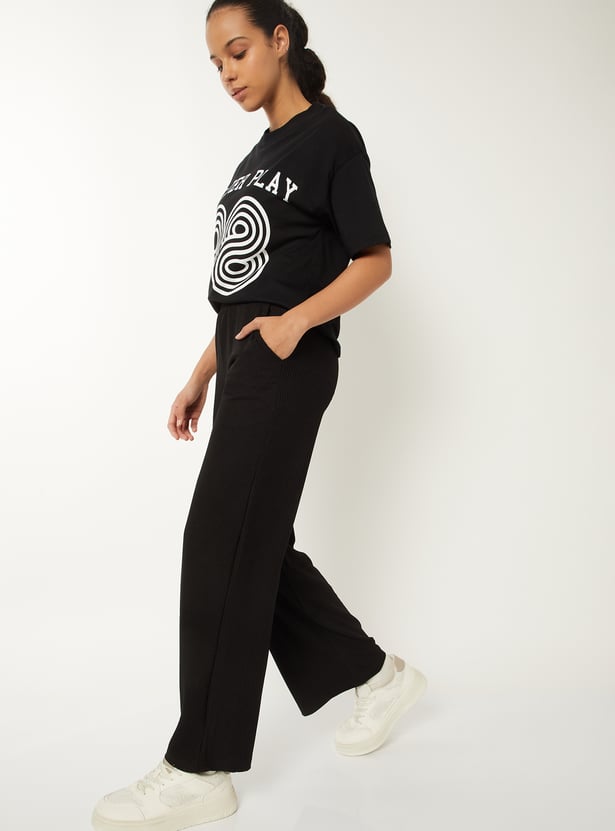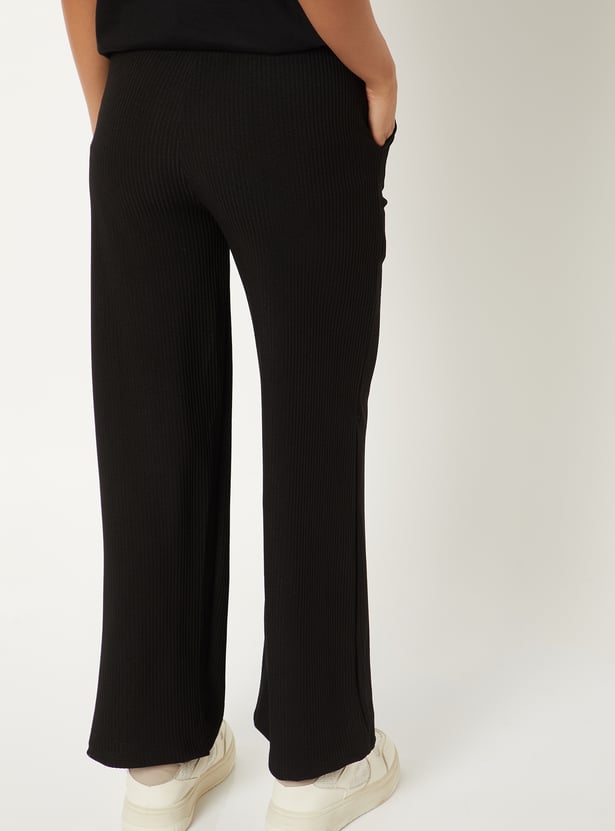 Women Ribbed Wide Leg Sports Track Pants