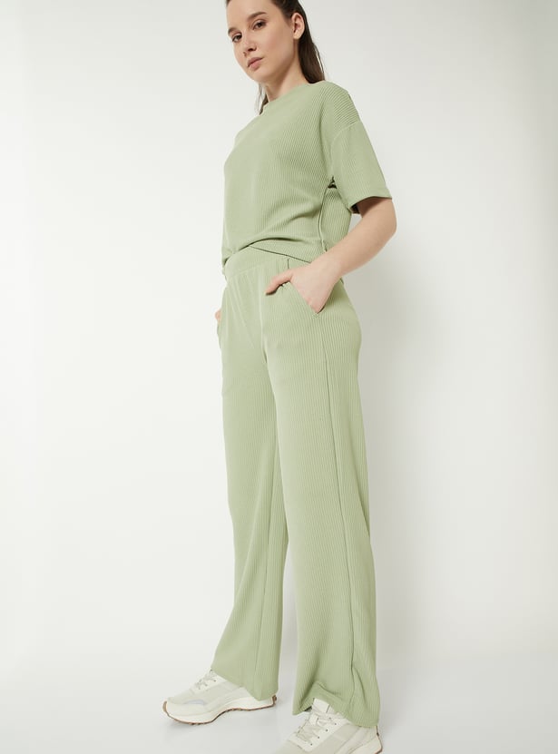 Women Ribbed Wide Leg Sports Track Pants