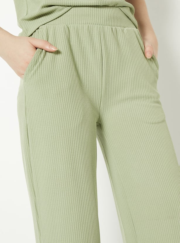 Stay comfortable and effortlessly stylish with these ribbed wide-leg track pants, featuring an elasticated waist for a flexible fit. The ribbed texture adds a modern touch to this relaxed silhouette.