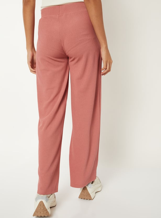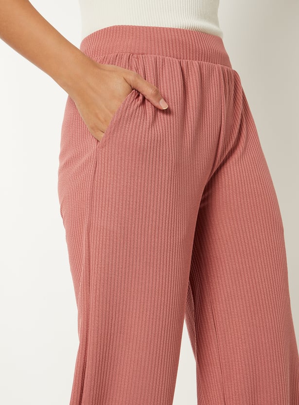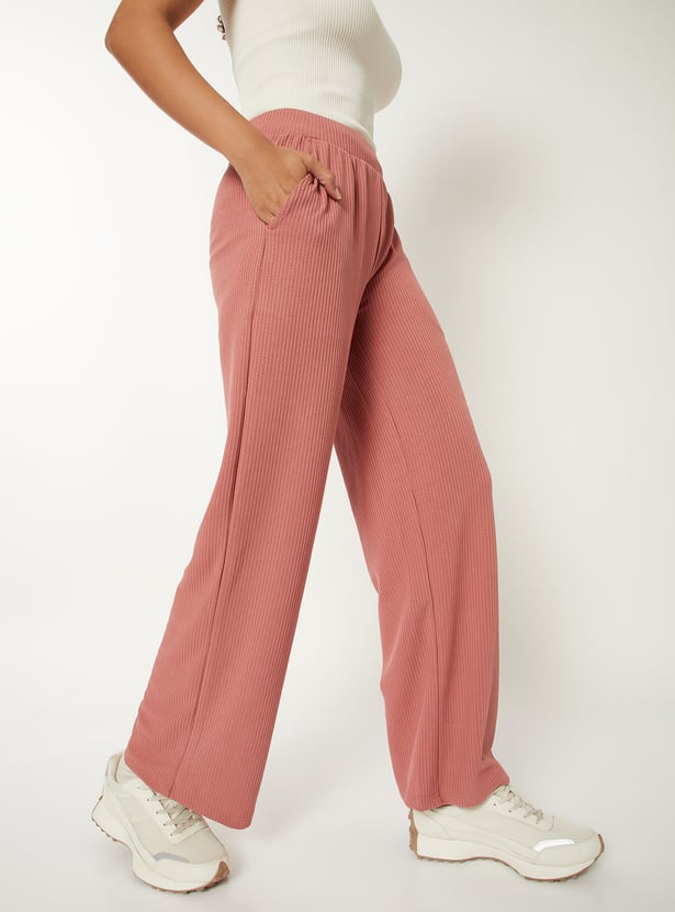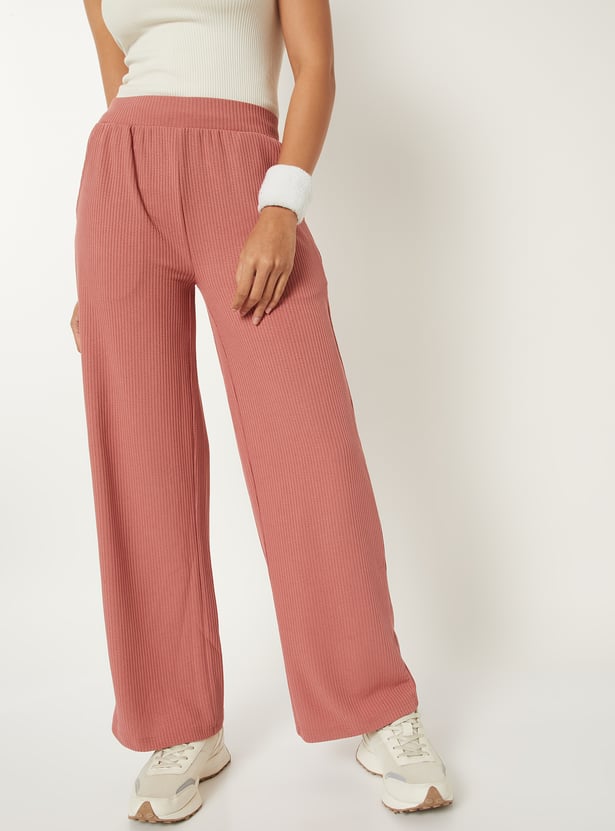 Stay comfortable and effortlessly stylish with these ribbed wide-leg track pants, featuring an elasticated waist for a flexible fit. The ribbed texture adds a modern touch to this relaxed silhouette.