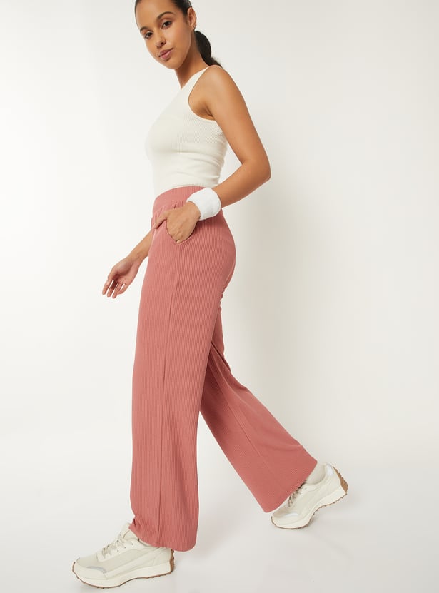 Women Ribbed Wide Leg Sports Track Pants