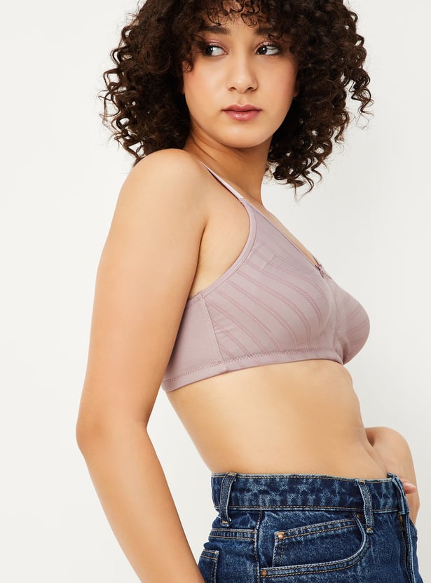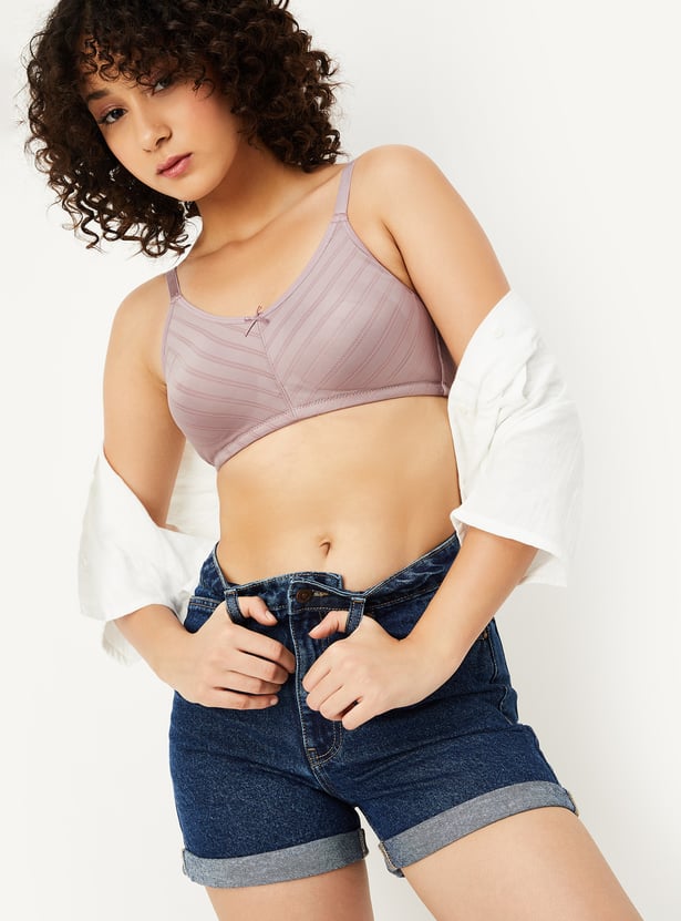 Experience comfort and style with this bra. The seam-free design with soft cups ensure comfort. The striped woven design adds to the style. This shaper bra features adjustable straps and back hook and eye closure.