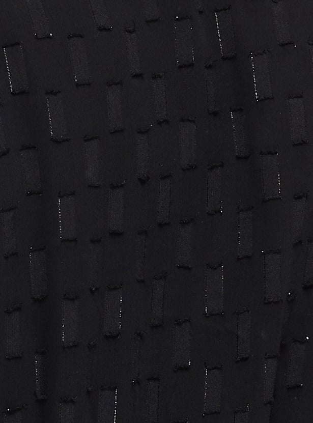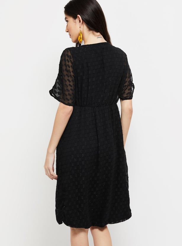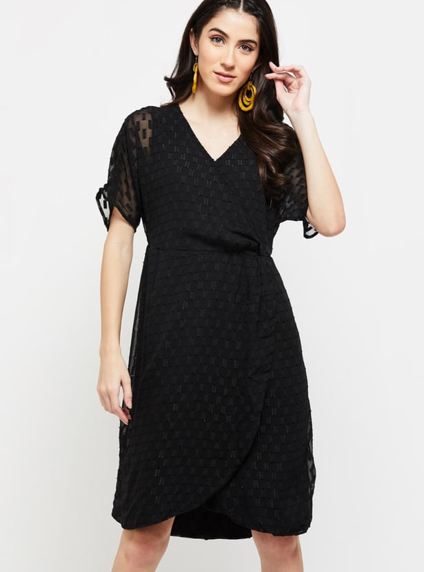 Women Shimmery Textured Surplice Neck Wrap Dress