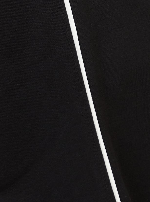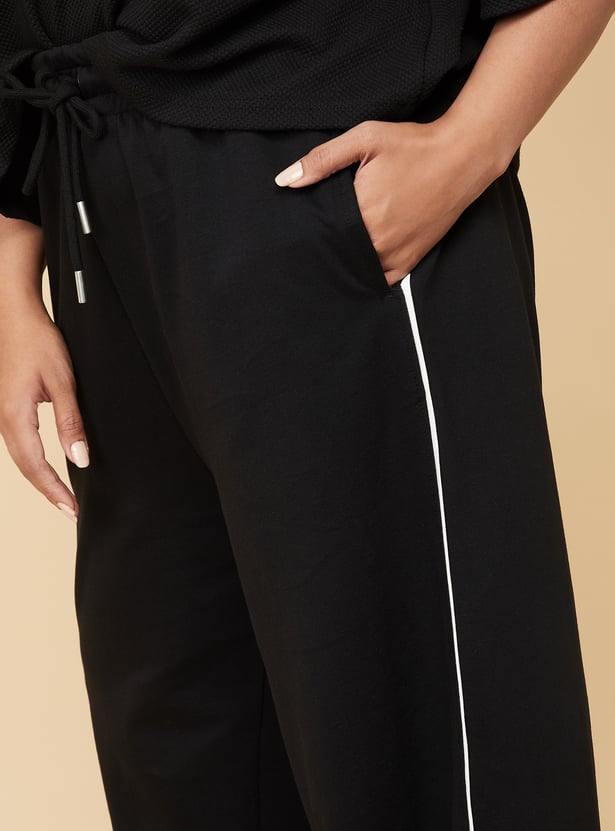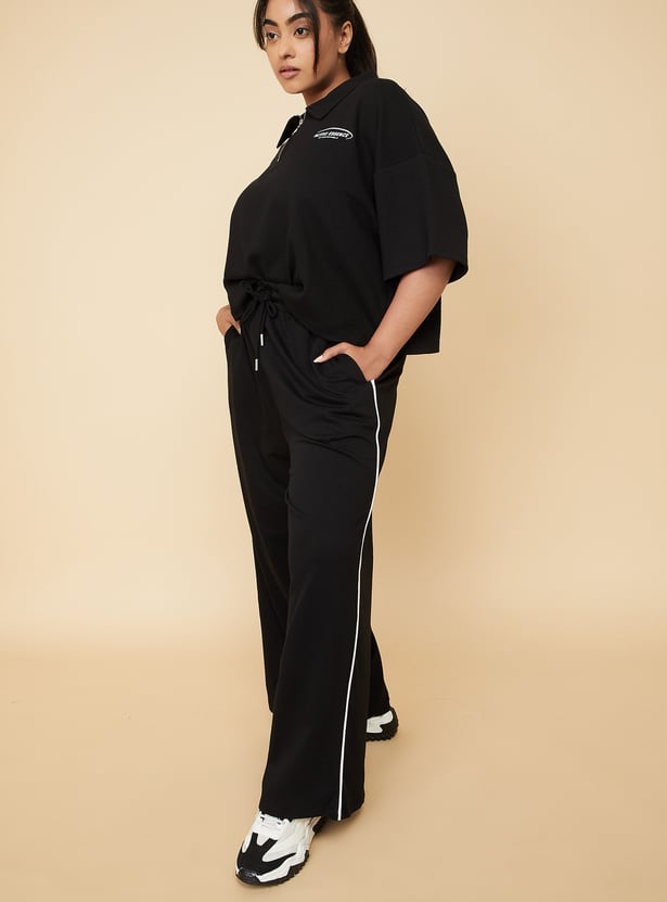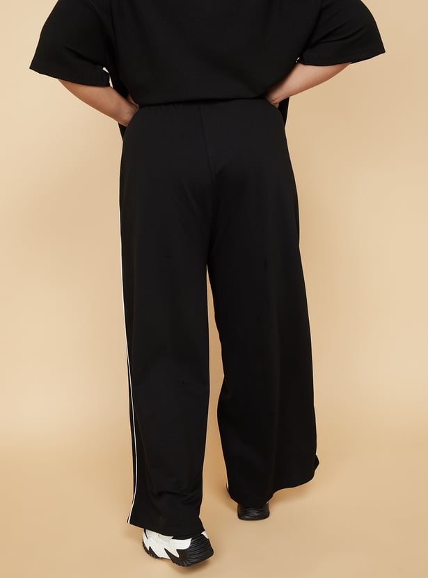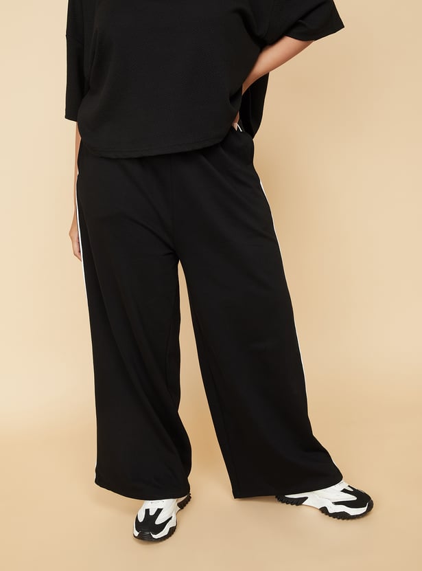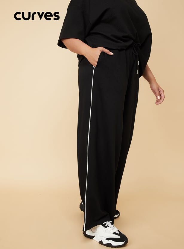 Elevate your athleisure or workout look with this pair of track pants. The wide leg profile ensures unrestricted movement, while the drawstring waist offers custom comfort. The side pockets add practicality, while the side stripes add to the style. Model Size :