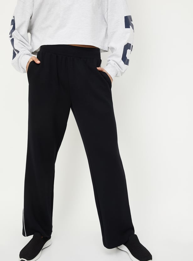 Built for comfort and style, these side taped track pants feature an elasticated mid-rise, waist and functional pockets. The bold side tape adds a sporty edge, perfect for active or casual days.