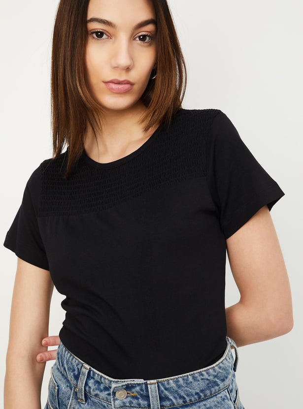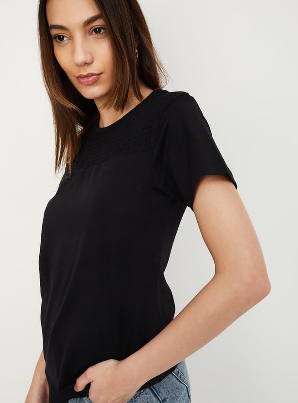 Women Smocked Yoke T-shirt