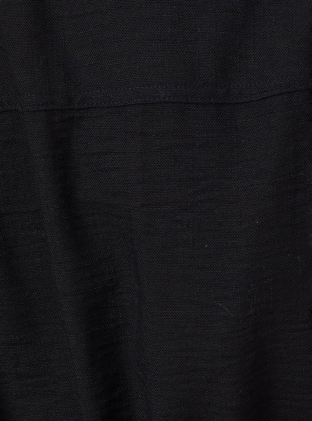 Women Solid A-line Belted Dress