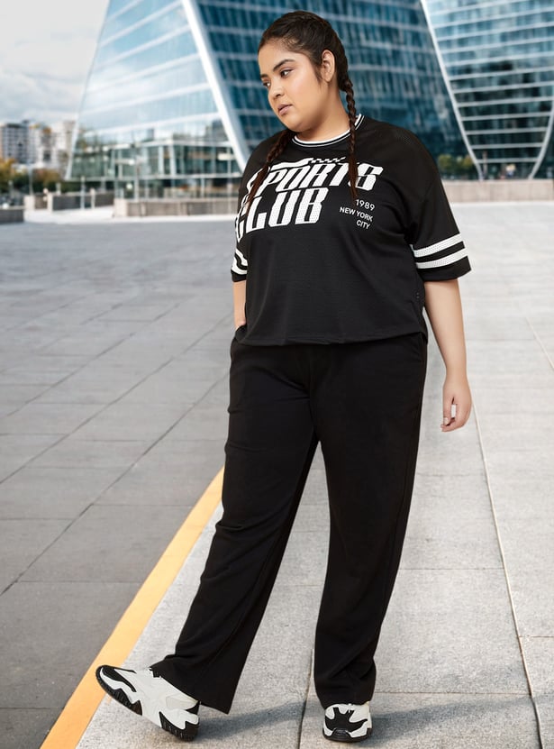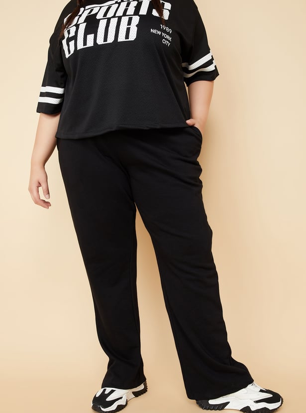 Elevate your activewear collection with these solid athleisure track pants, featuring an elasticated waistband and functional pockets. Perfect for workouts or casual wear. Model Size :