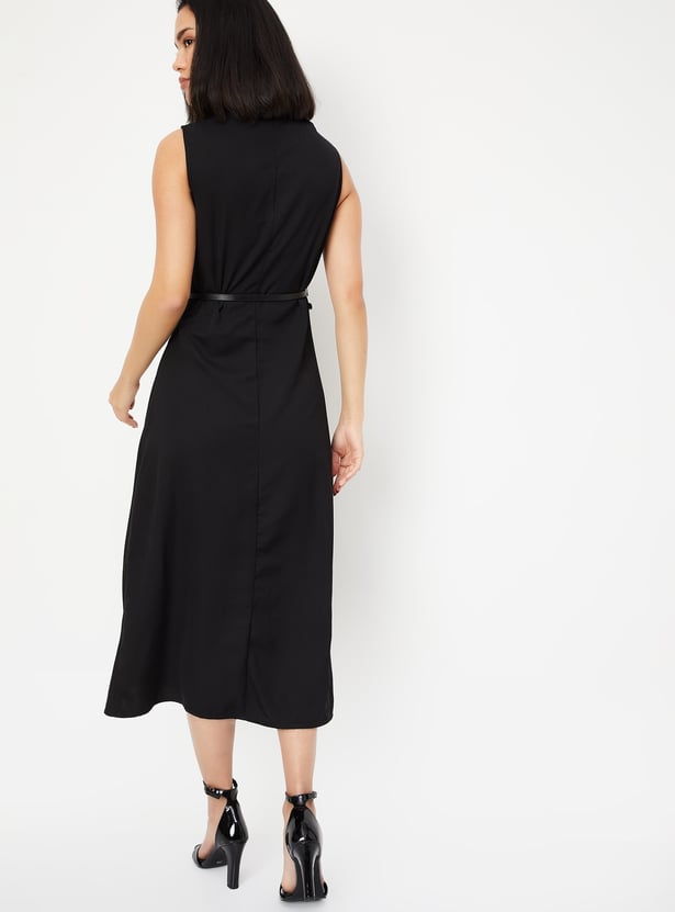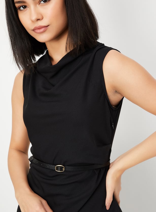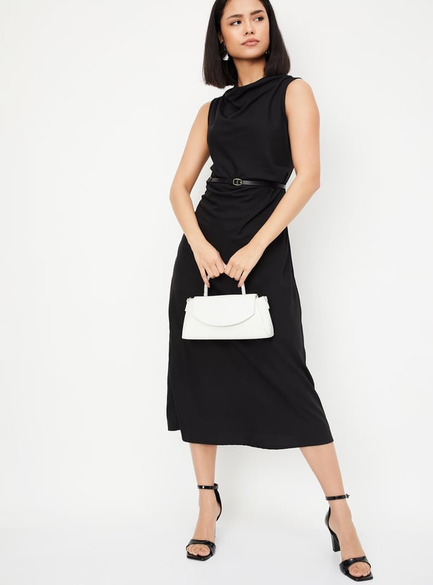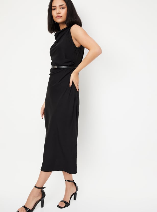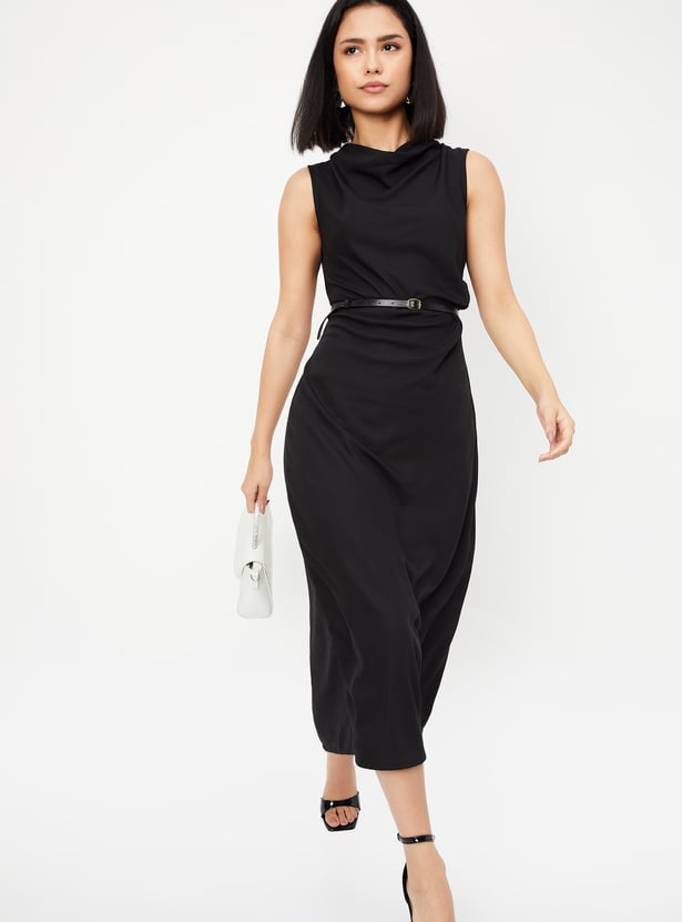 Turn heads in this sleek, solid midi dress that’s all about effortless style! With its sleeveless design, flattering cowl neck, and belted waist, this dress gives you that perfect mix of chic and comfy vibes.