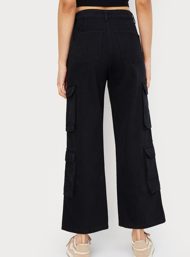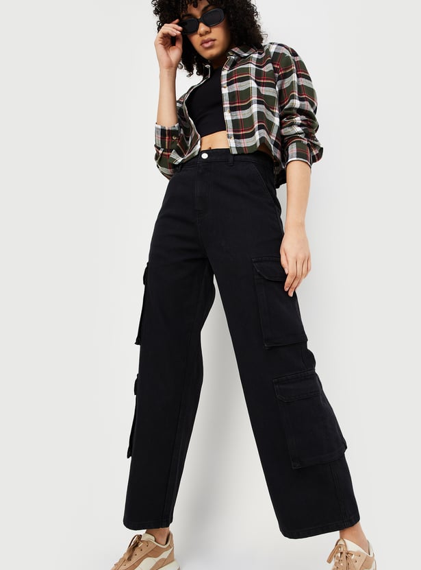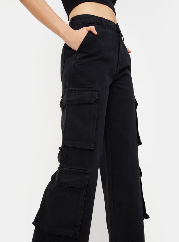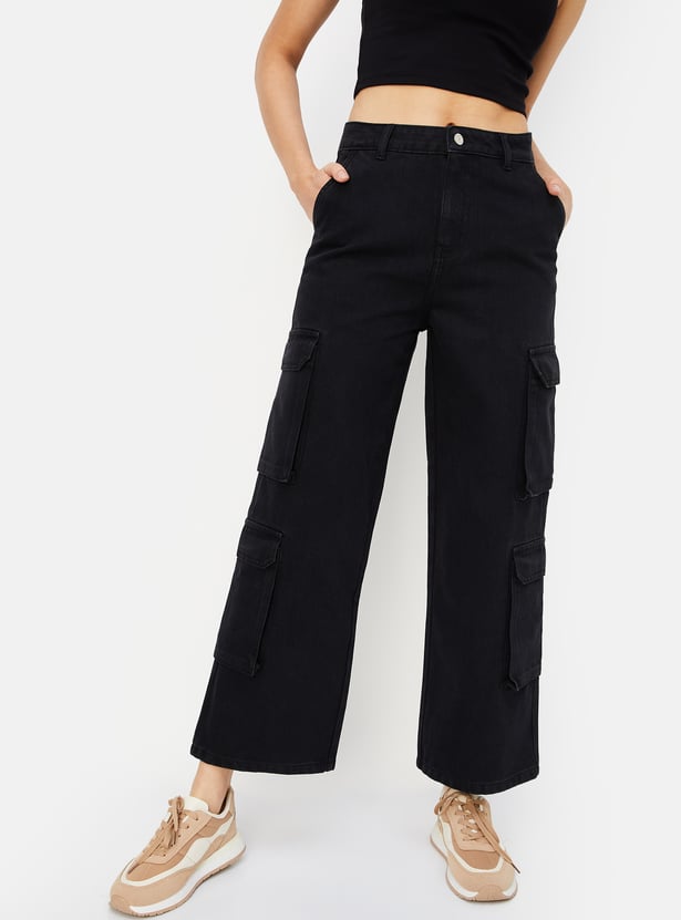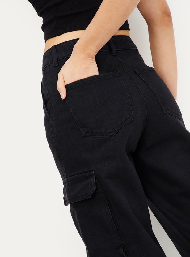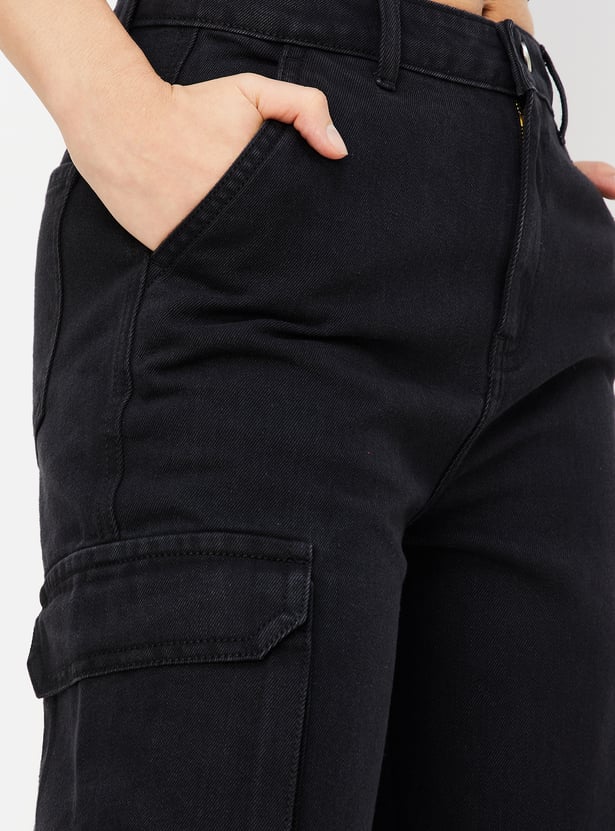 Women Solid Cargo Jeans