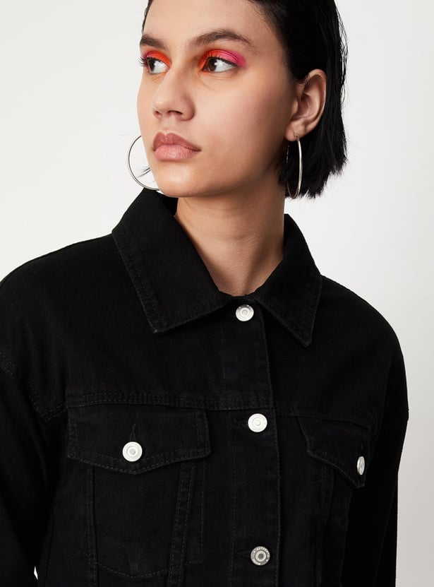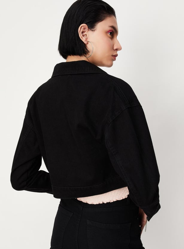 Women Solid Crop Denim Jacket