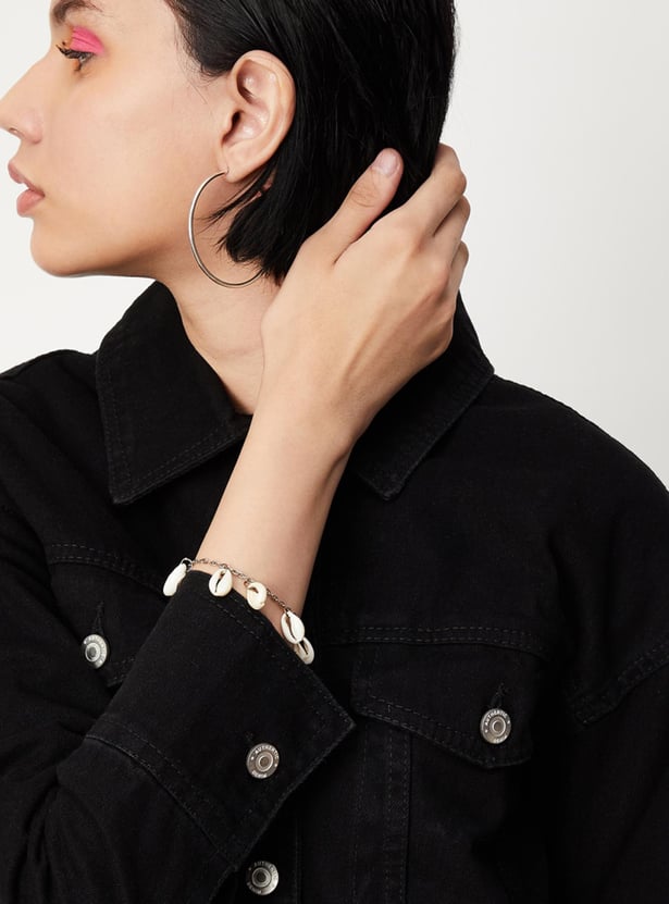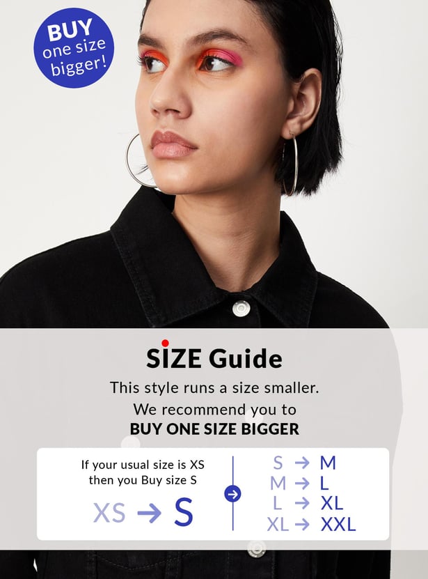 Up your layering game with this denim jacket in a solid tone. It features a spread collar, long sleeves, buttoned cuffs, double flap pockets with button closure on the chest, and a crop profile. Style this jacket with a tee and jeans to ace the look.