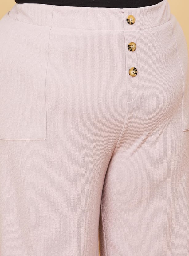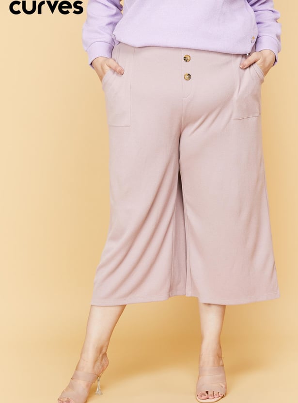 Designed into a solid surface with an elasticated waist and button closure, this pair of culottes is an ideal pick to give yourself a coordinated and stylish look.
