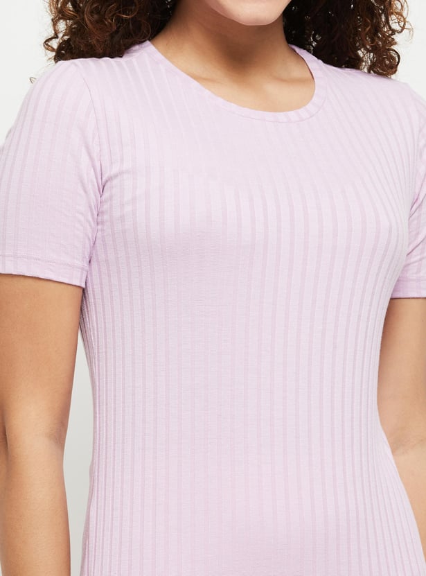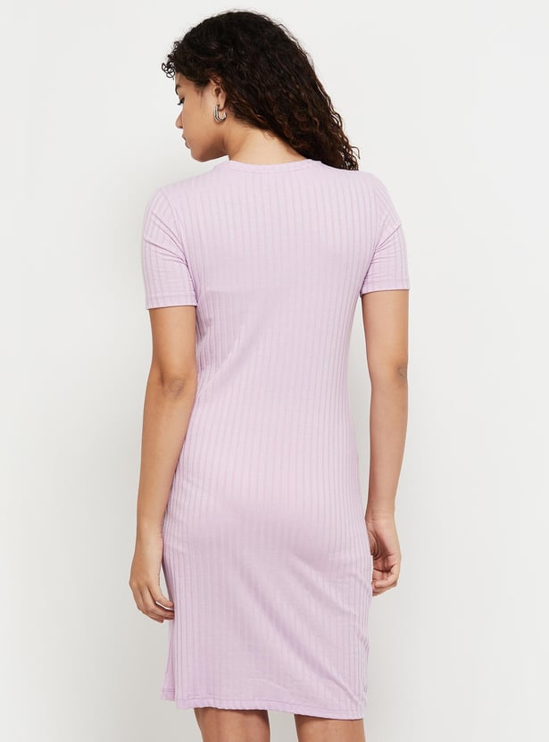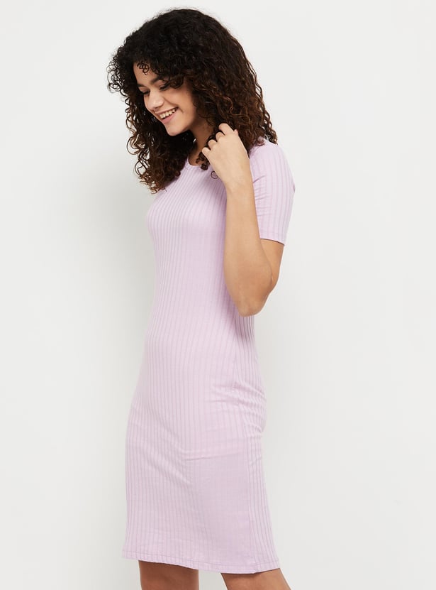 Make a style quotient with this bodycon dress designed with a solid surface, round neckline, and half sleeves.