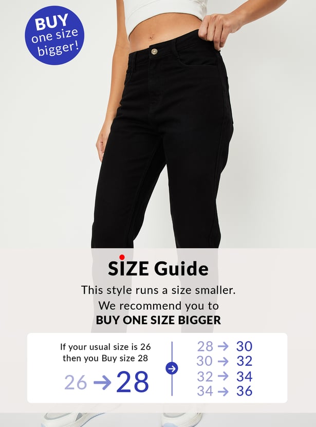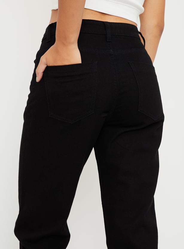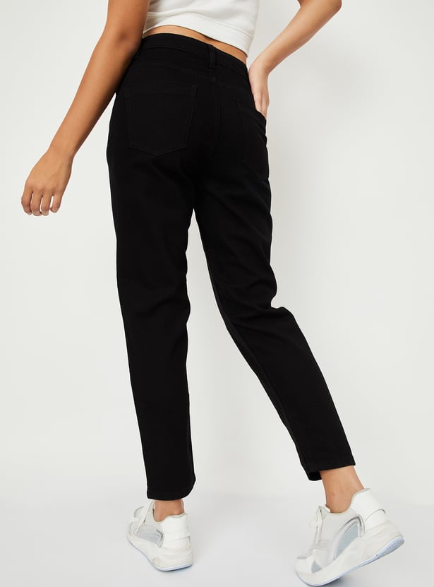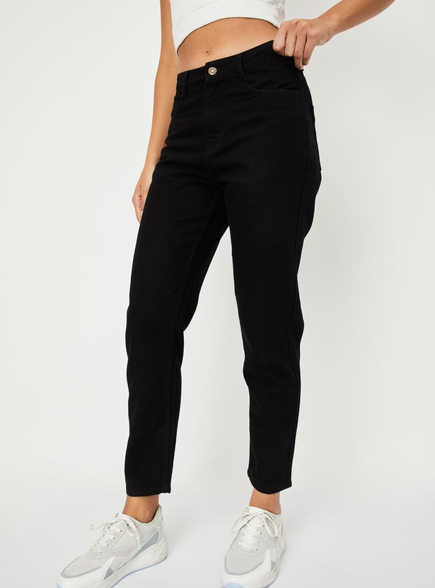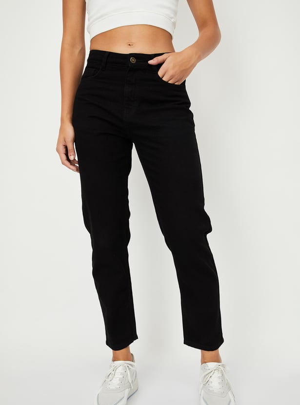 Women Solid High Rise Mom Fit Crop Jeans