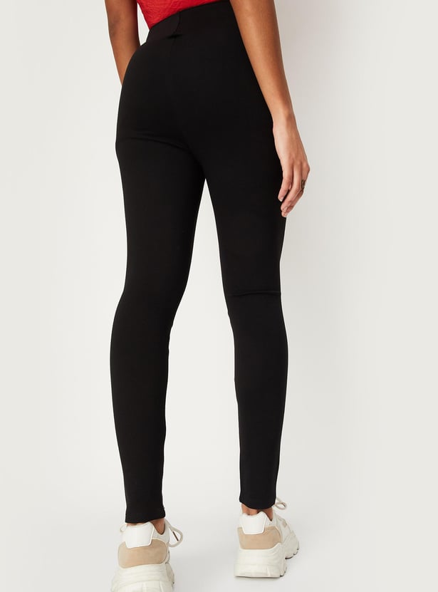 Women Solid High-Waist Treggings
