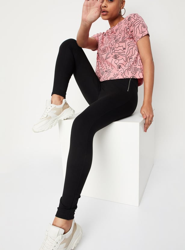 Women Solid Jeggings with Zipper Detail