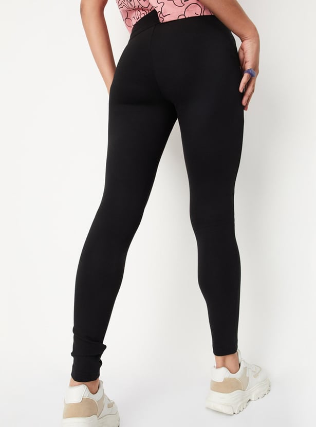 Make a classy outfit by wearing this pair of jeggings. It comes with a solid surface, front zipper detail at the waistband, an elasticated waistline, and a full-length construction. It can be paired with a top and lace-up shoes to make a complete look.