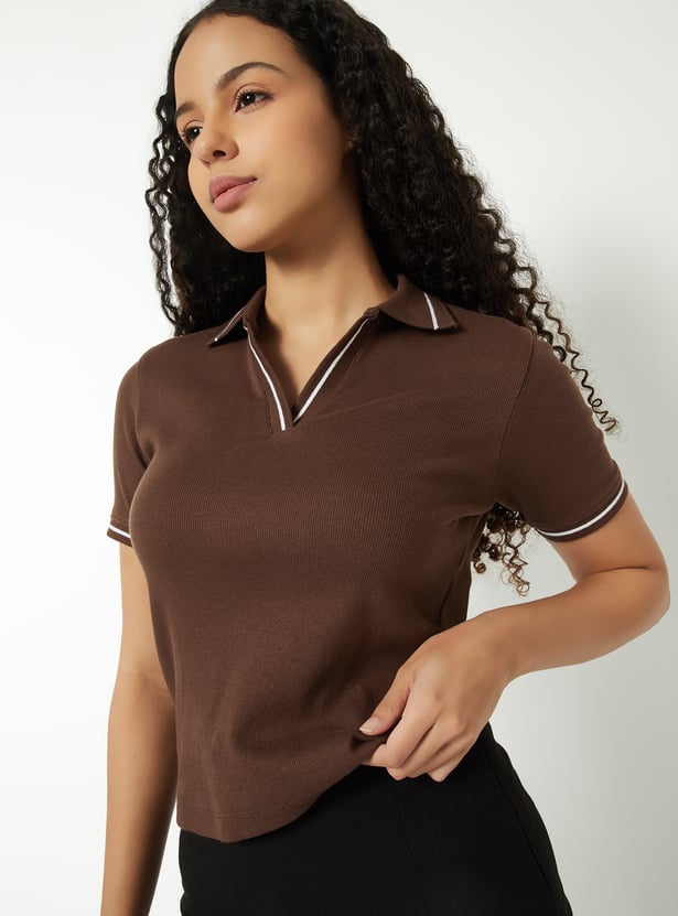 Keep it casual yet polished with this solid Johnny collar T-shirt, designed with contrast stripes at the sleeves and collar for a sporty touch. Crafted from soft fabric, it ensures all-day comfort and style.