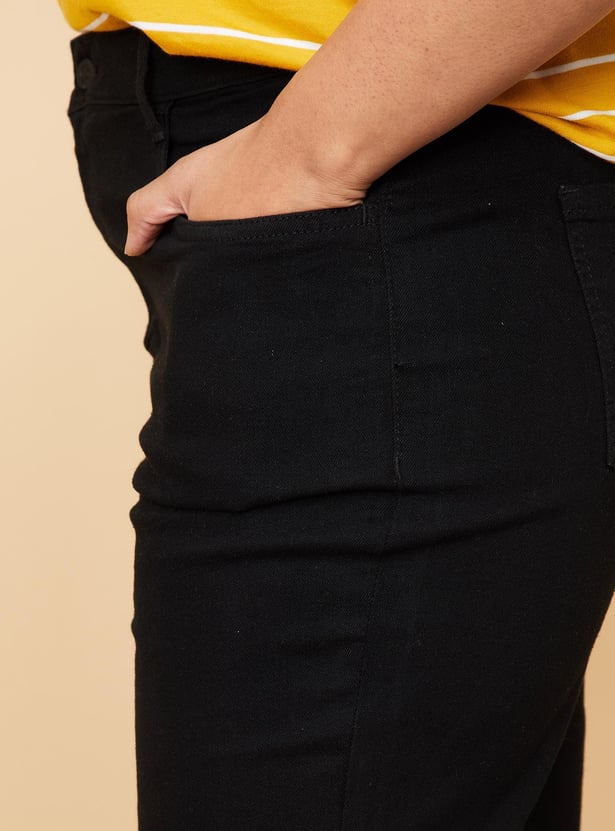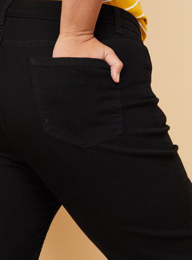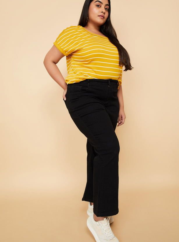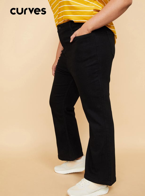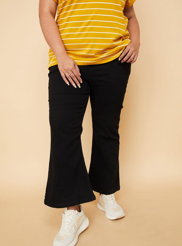 Amp up your street style with this pair of jeans tailored in a flared profile. It features a high waist with belt loops and a solid finish.